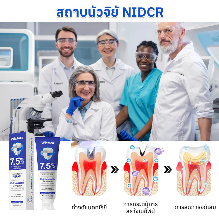 【เสริมผิวฟันเร็ว 7 วัน】ยาสีฟันนาโน Hydroxyapatite 7.5% สูตรปราศจากฟลูออรีน ขจัดคราบฟัน/ฟื้นฟูเคลือบฟัน/ฟันขาวสดใส/เสริมความแข็งแรง