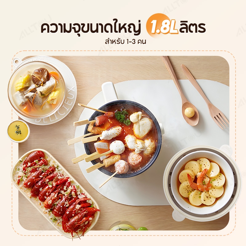 ALLTOU รวมหม้อไฟฟ้ามินิ ทาน1-2 คน ร้อนเร็ว อเนกประสงค์ หุง ตุ๋น ต้ม นึ่ง ผัด สุกี้ Multi-purpose mini hotpot