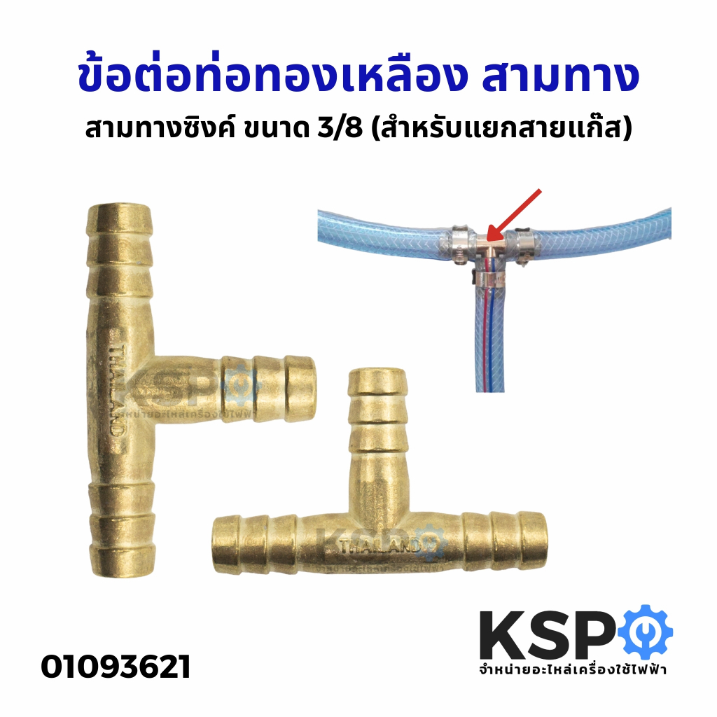 ข้อต่อท่อทองเหลือง สามทางซิงค์ ขนาด 3/8 (สำหรับแยกสายแก๊ส) อะไหล่เตาแก๊ส