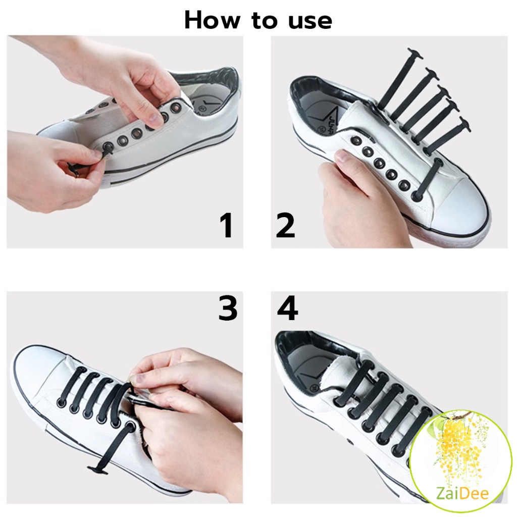 เชือกรองเท้าแบบซิลิโคน ไม่ต้องผูก 16 แท่ง / แพ็ค เชือกผูกรองเท้า Lazy shoelaces