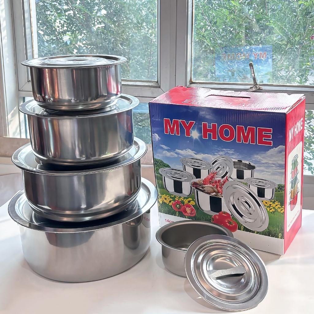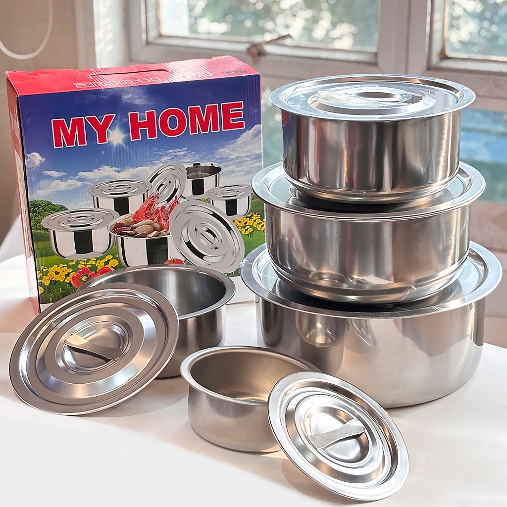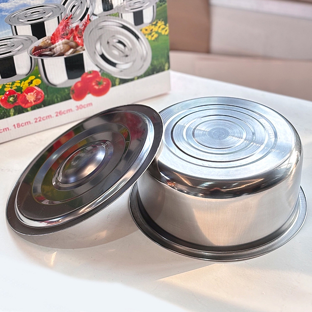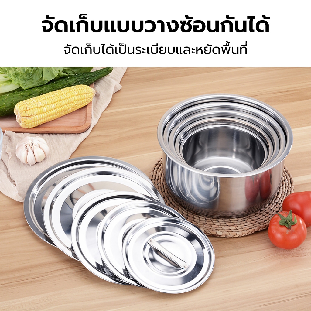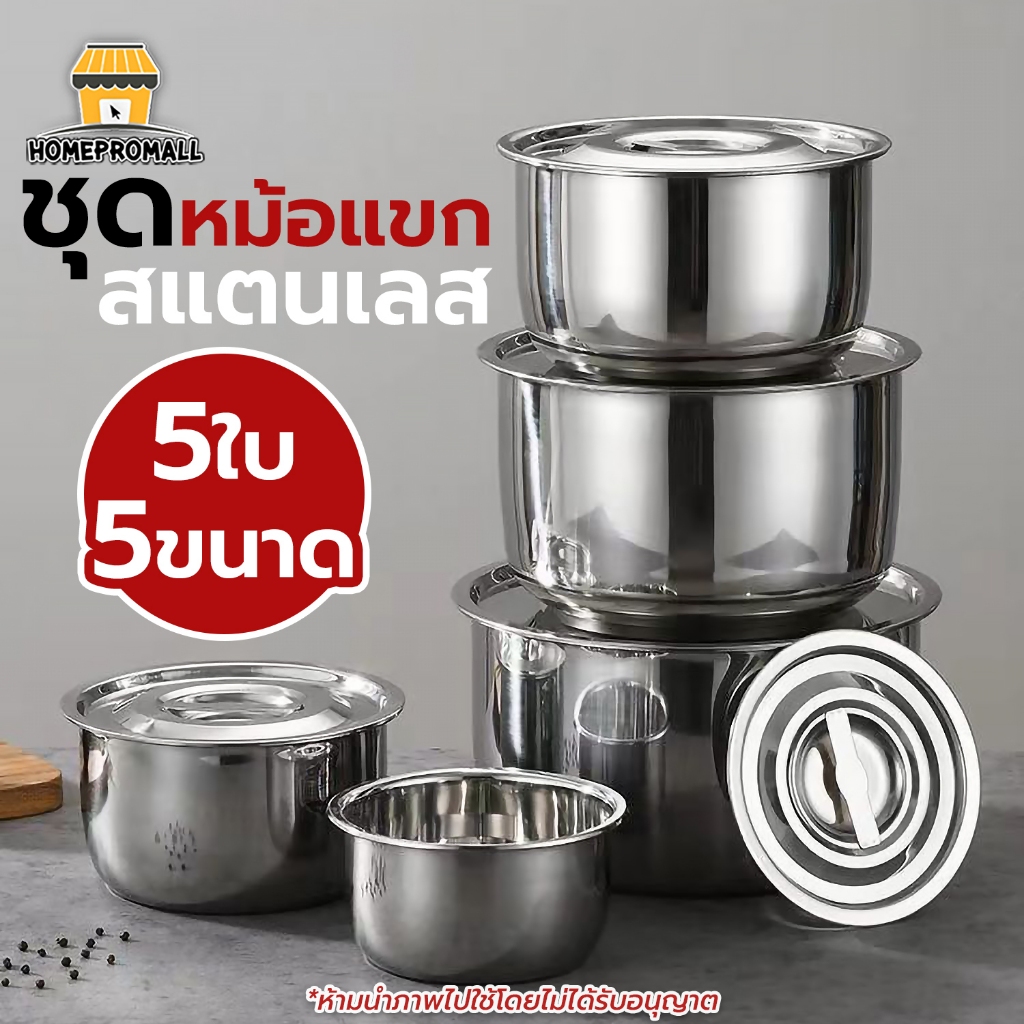 หม้อแขกสแตนเลส พร้อมฝาปิด ชุด3ใบ/5ใบ หม้อใส่แกง ใช้อุ่นอาหารได้กับทุกเตา หม้อแขก หม้อต้ม