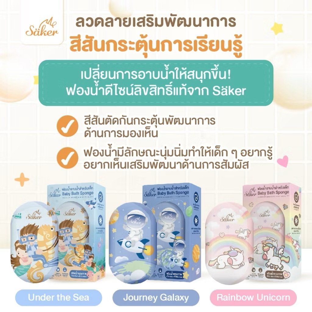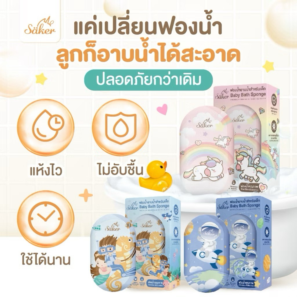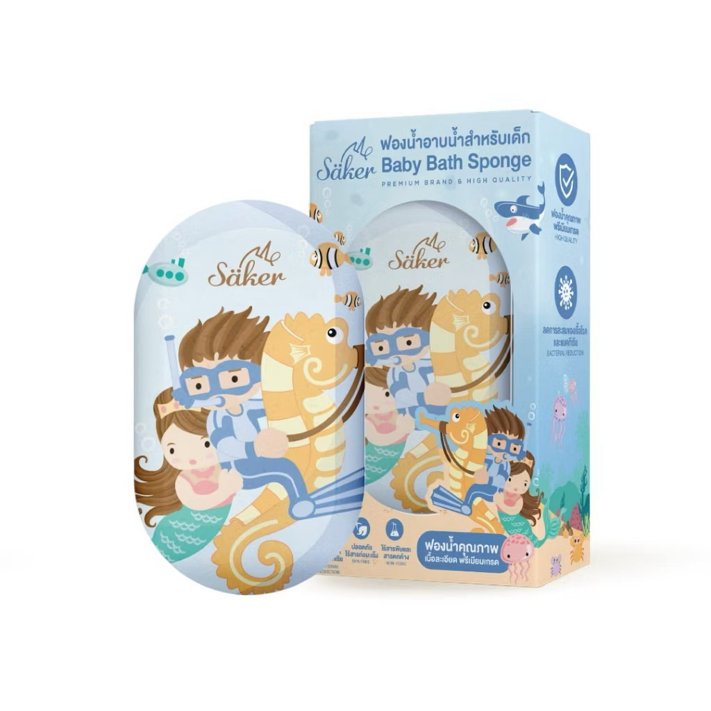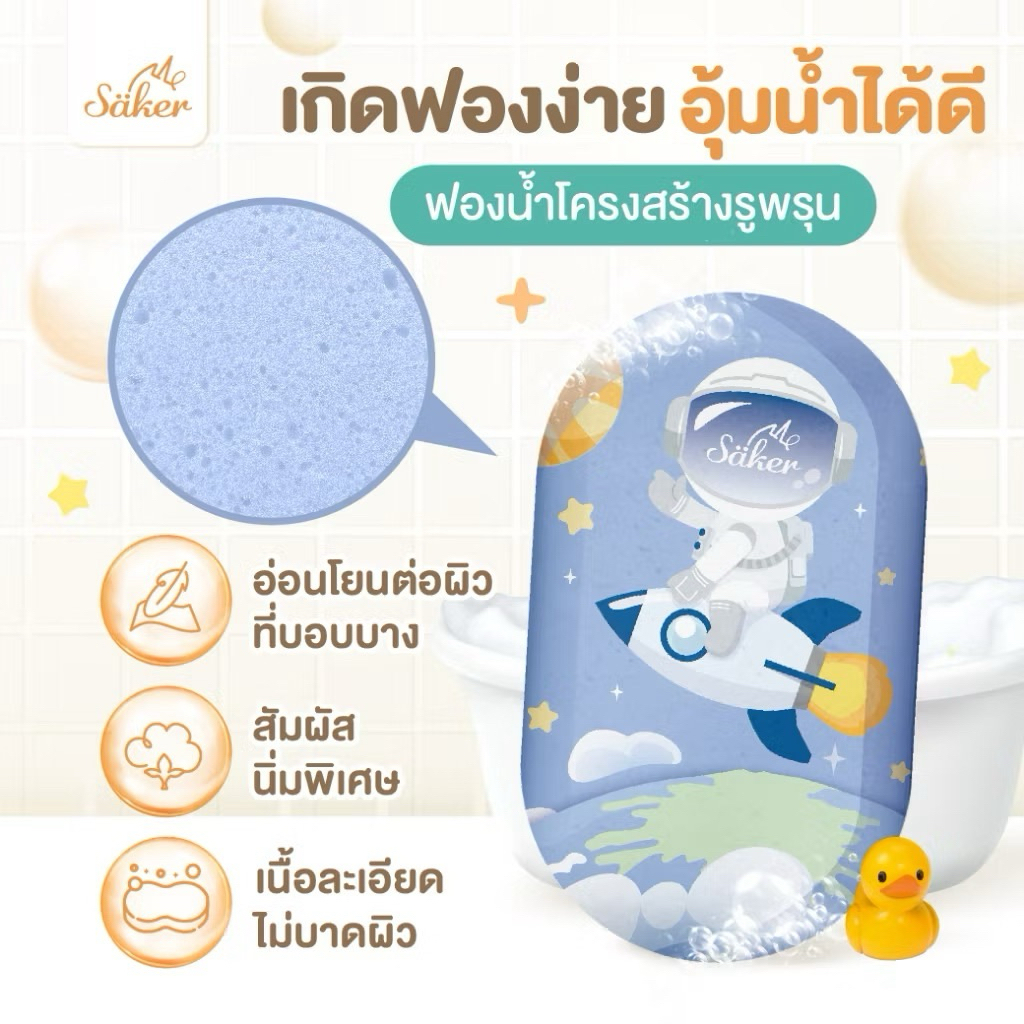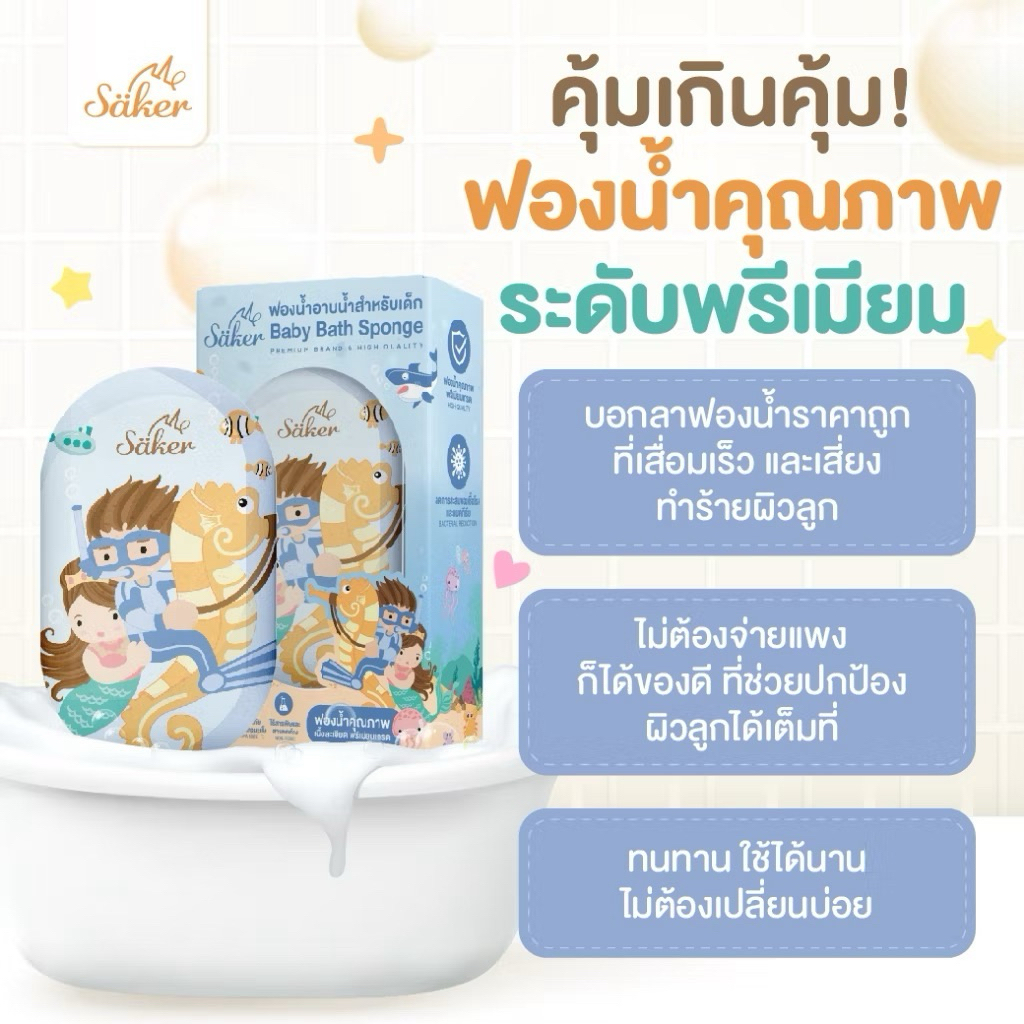 (วัสดุลดแบคทีเรีย99%มีใบเซอร์) ฟองน้ำอาบน้ำเด็ก Saker นุ่มพิเศษ ปลอดภัย ลดผื่นแพ้ ผิวแพ้ง่ายใช้ได้