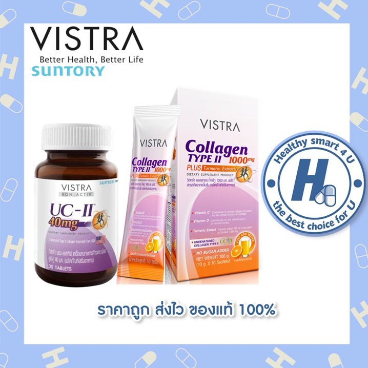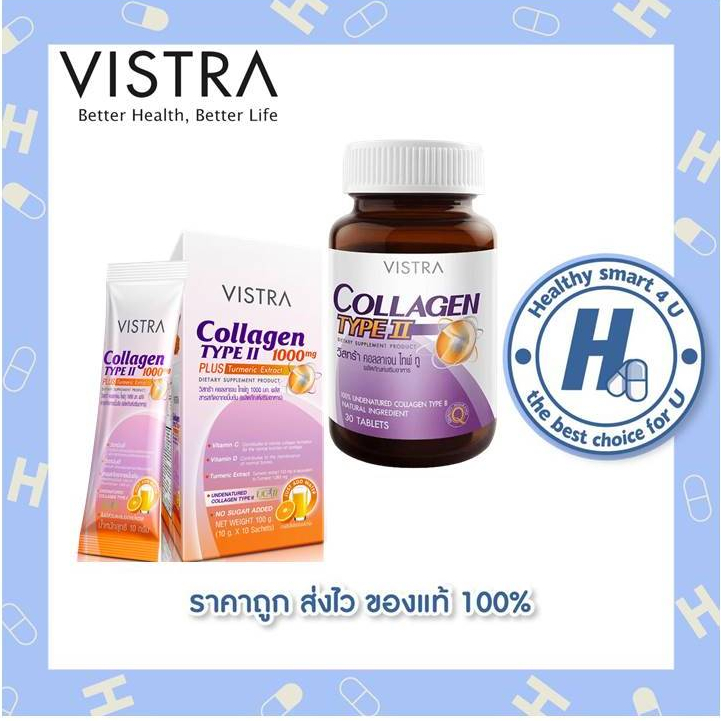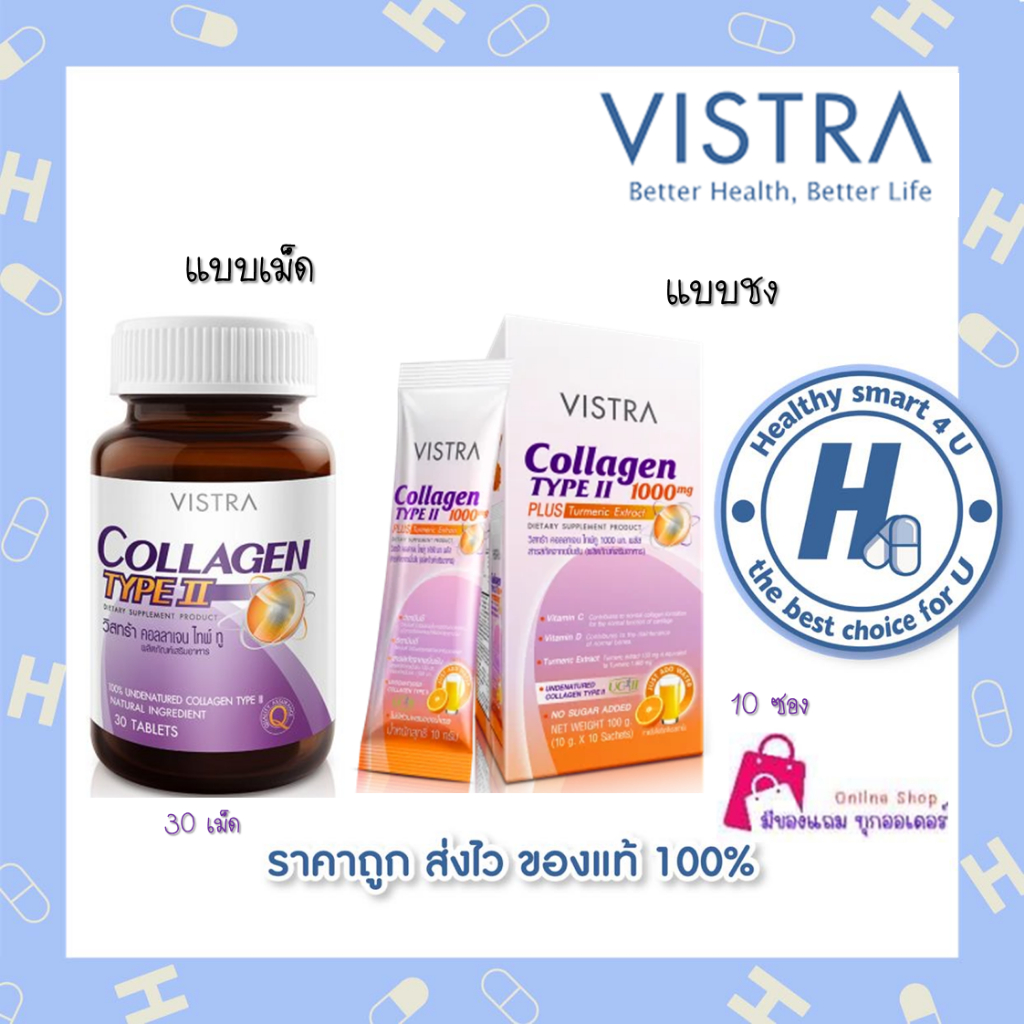 🔥lot ใหม่ พร้อมส่ง🔥VISTRA Collagen Type II ( แบบขวด 30 เม็ด ) (แบบชง 10 ซอง ) บำรุงข้อเข้า ลดข้อเข่าเสื่อม