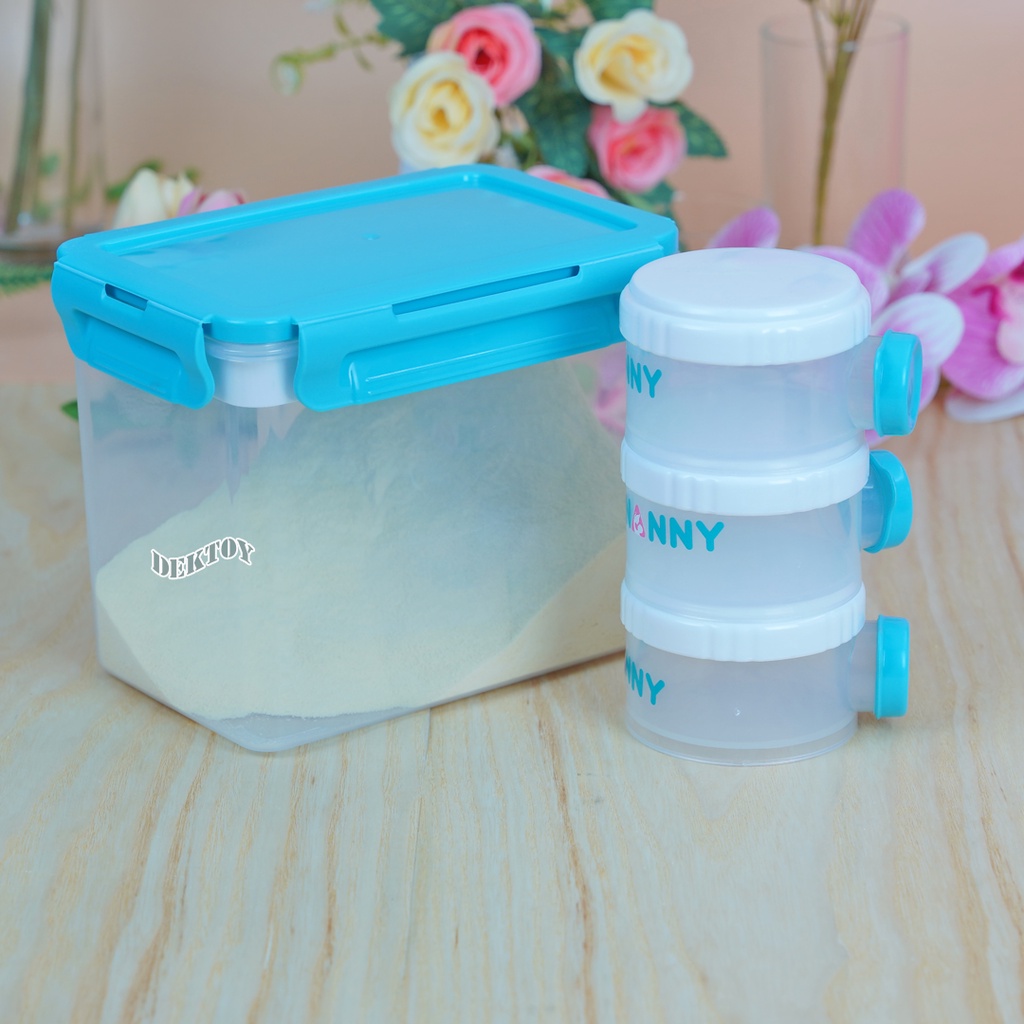 NANNY แนนนี่ กล่องเก็บนมผง พร้อมช้อนตัก 2100มล.(1100กรัม) ฝาปิดล็อคสูญญากาศ N493