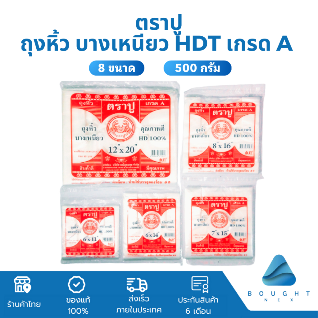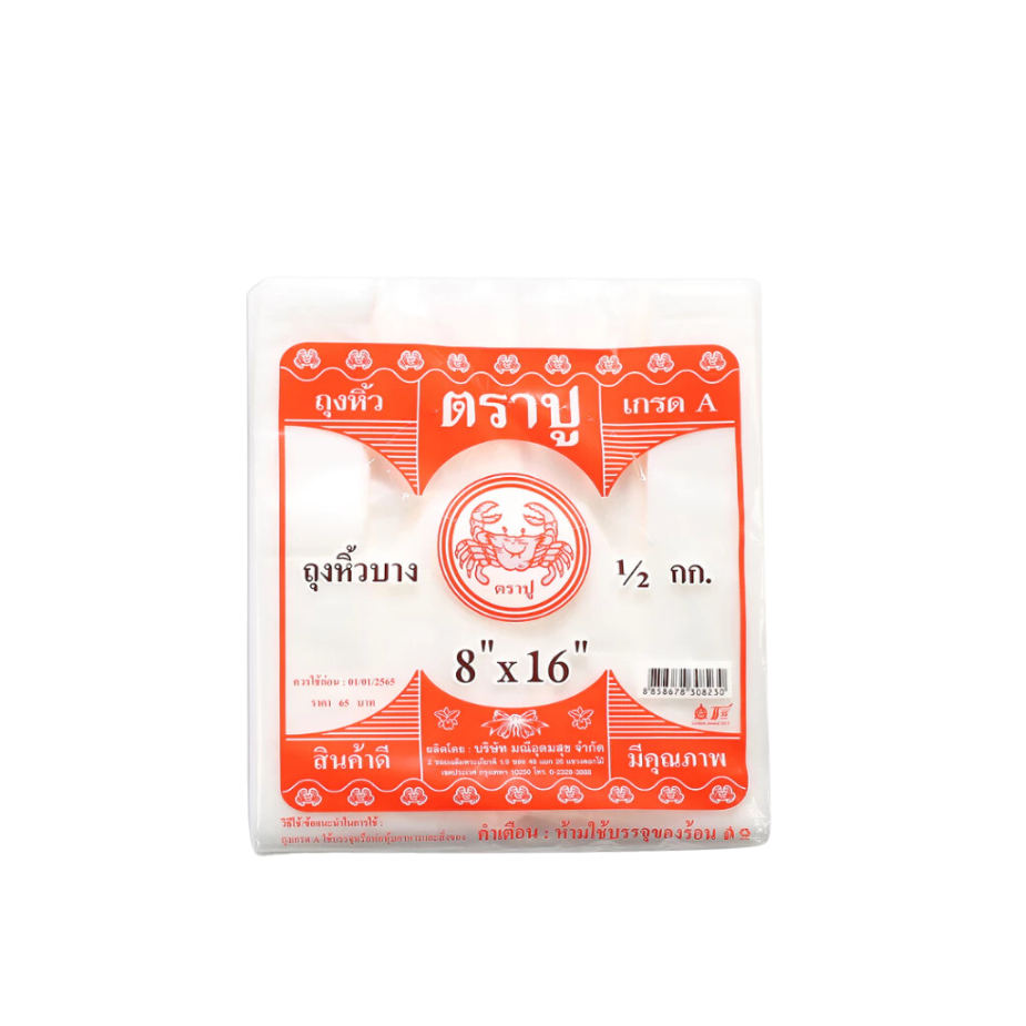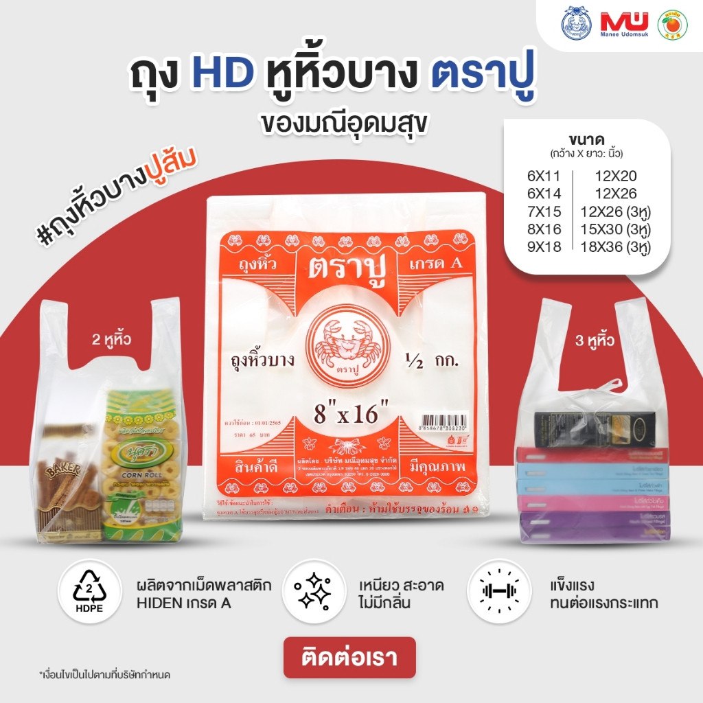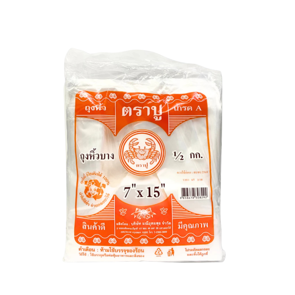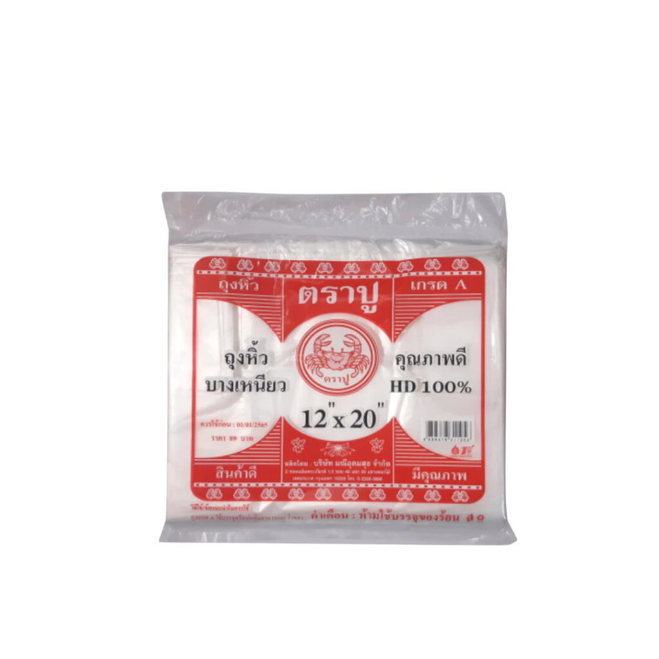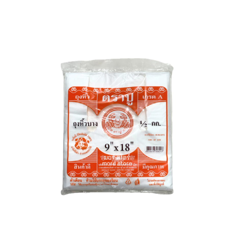 ตราปู ถุงหูหิ้วใส HDT ส้ม เกรด A คุณภาพดี เนื้อเหนียว ขาวขุ่น ถุงหิ้วทั่วไป ถุงหิ้วใส่อาหาร