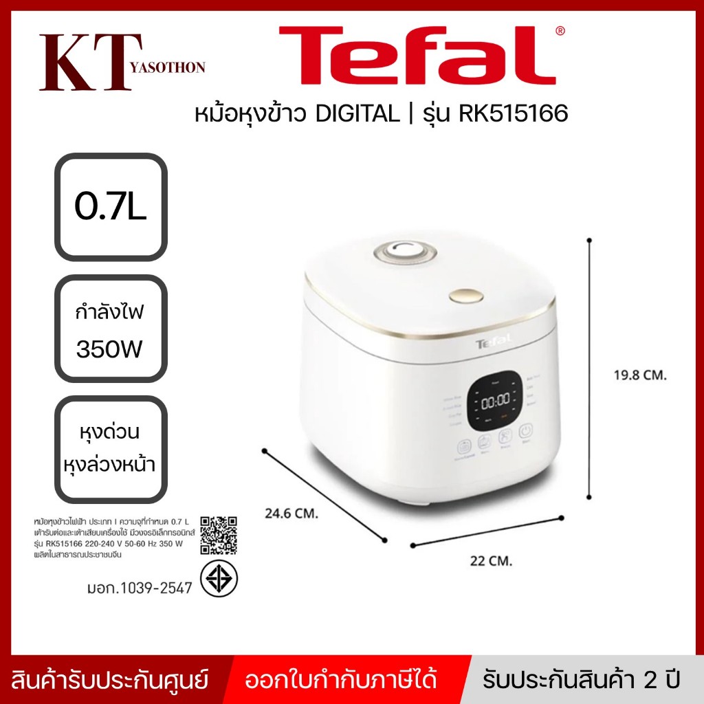 Tefal หม้อหุงข้าวสไตล์มินิมอล RICE MATE ความจุ 0.7 ลิตร รุ่น RK5151