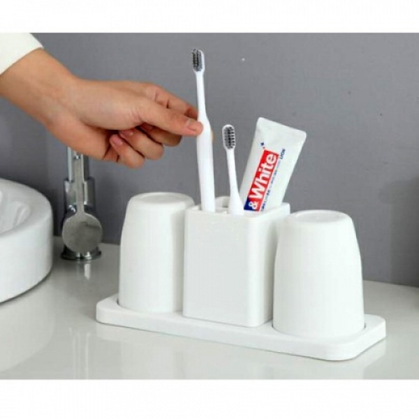 KOJI DIY ชุดแก้วใส่แปรงสีฟัน รุ่น 2SJX052-WH ขนาด 12x27x10 cm. สีขาว