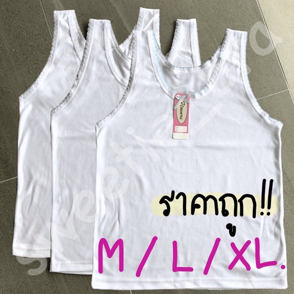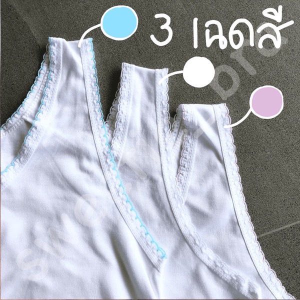 เสื้อกล้าม แขนขริบชมพู-ฟ้า-ขาว