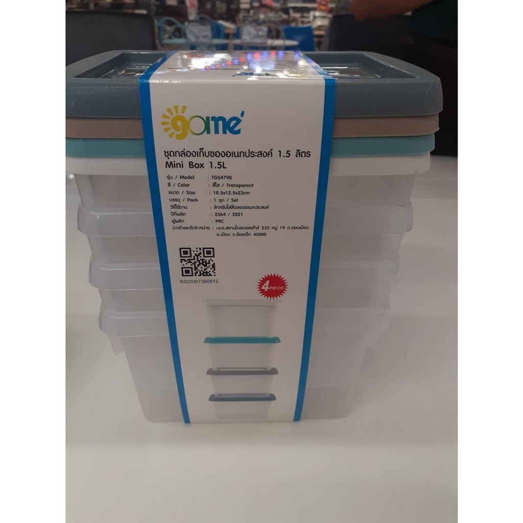 GlobalHouse GOME ชุดกล่องเก็บของอเนกประสงค์ 2 ลิตร (4ชิ้น) รุ่น TG54799 ขนาด 37x11x17.5 ซม. สีใส สินค้าของแท้คุณภาพดี