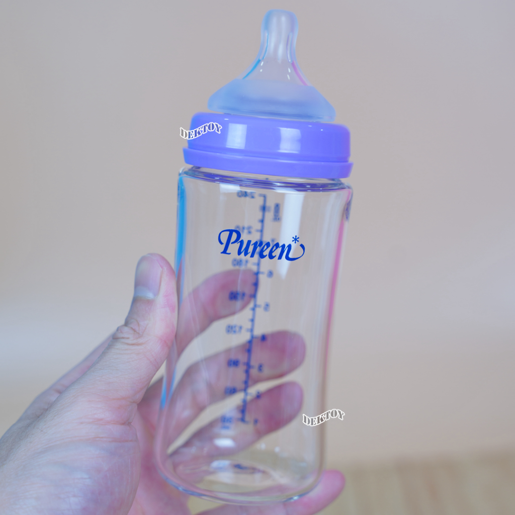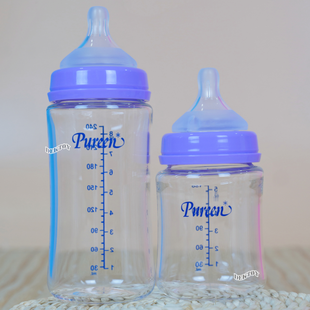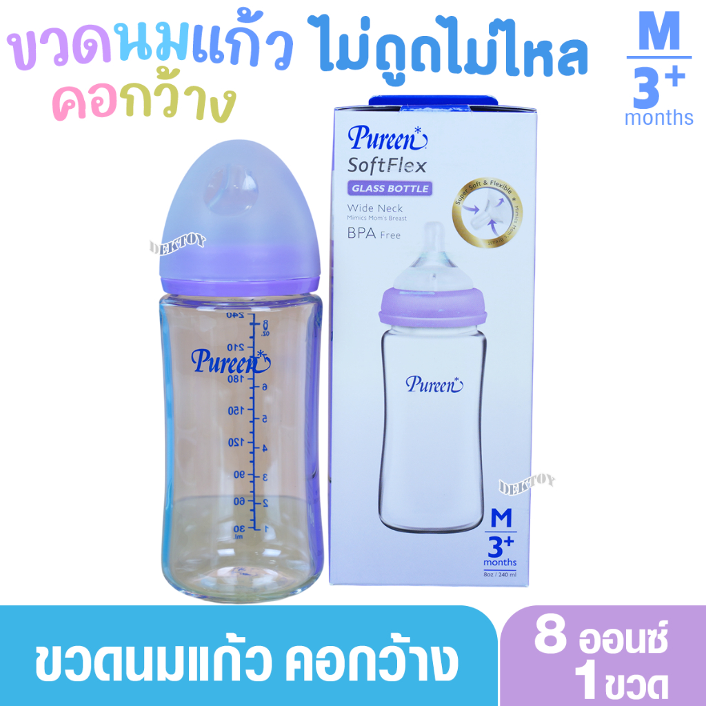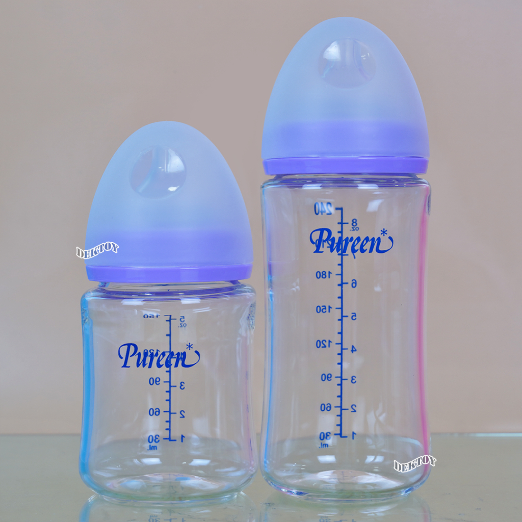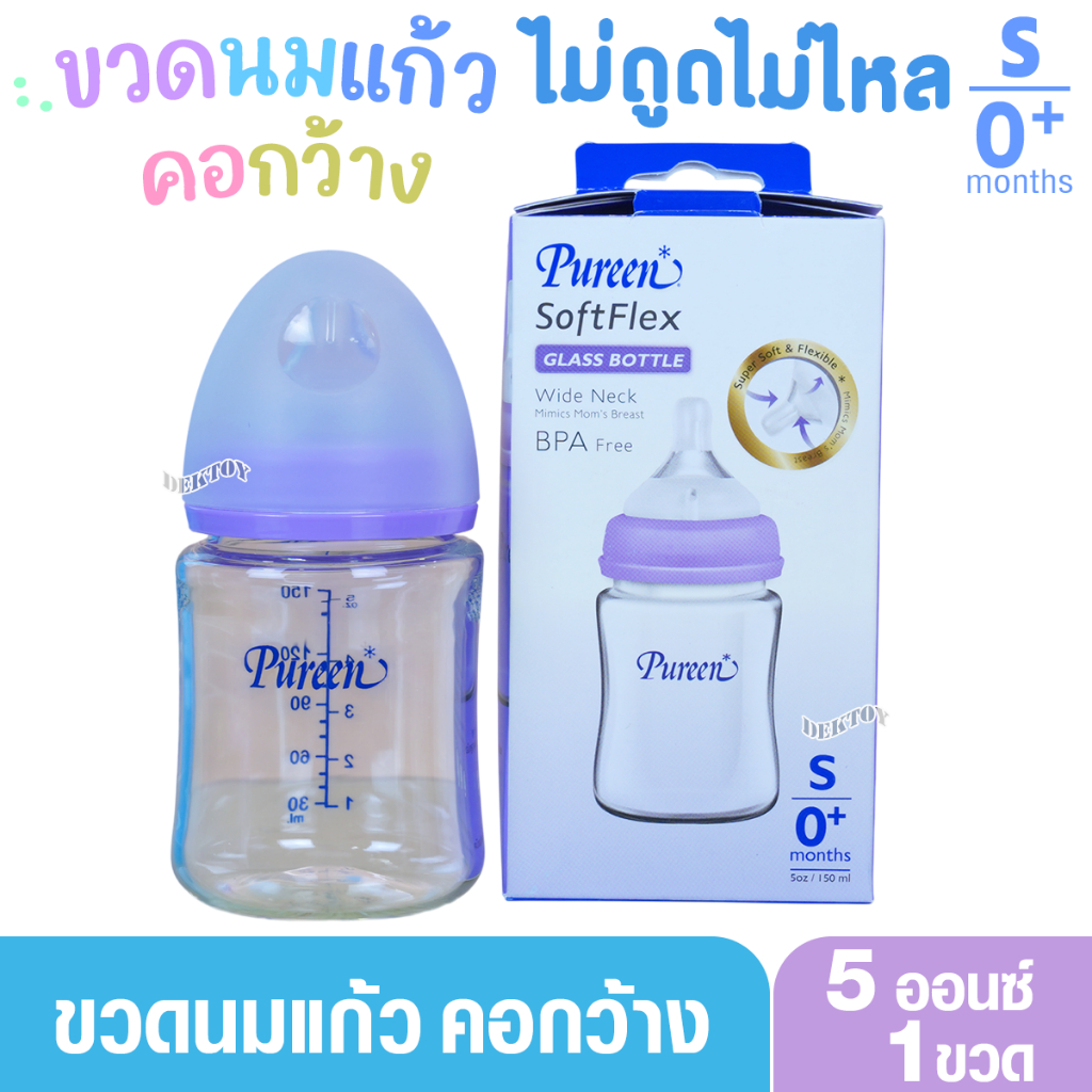 Pureen Glass Bottle ขวดนมแก้วเพียวรีน ขวดแก้วเพียวรีน soft Flex 5/8 ออนซ์ คอกว้างไม่ดูดไม่ไหล