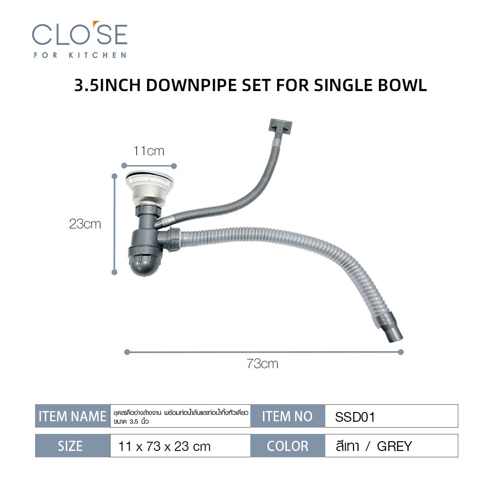 GlobalHouse CLOSE ชุดสะดืออ่างล้างจาน พร้อมท่อน้ำล้นและท่อน้ำทิ้งหัวเดี่ยว ขนาด 3.5 นิ้ว SSD01 สินค้าของแท้คุณภาพดี