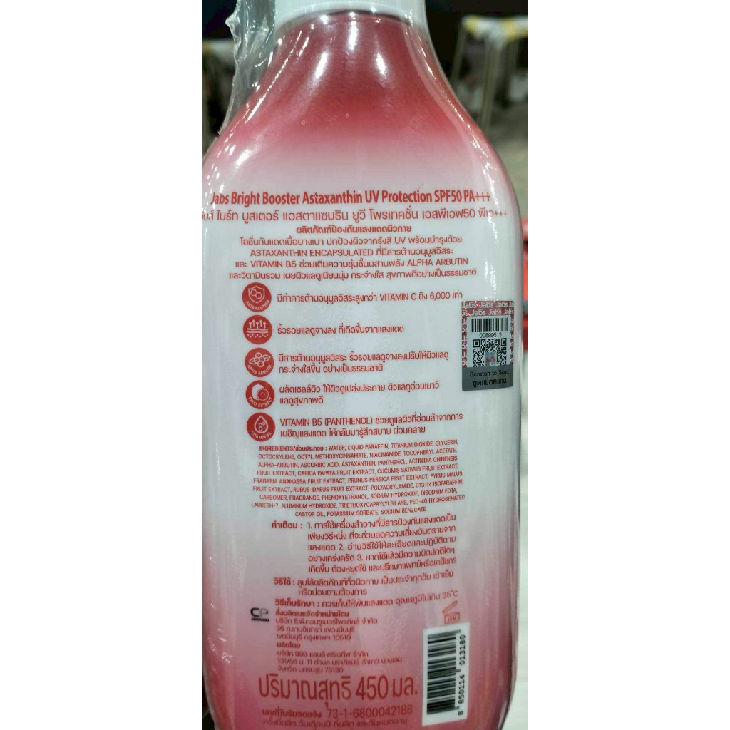 [ 1ขวด ] Jabs แจ๊บส์ บอดี้ โลชั่นโลชั่นกันแดด 5 สูตร ขนาด 450 มล. (1ขวด) คละสูตร