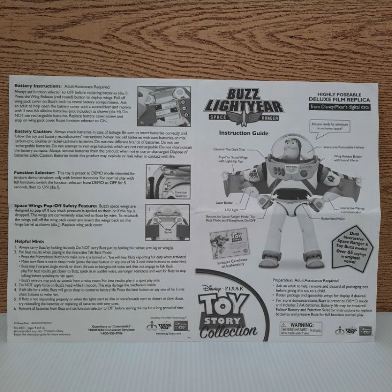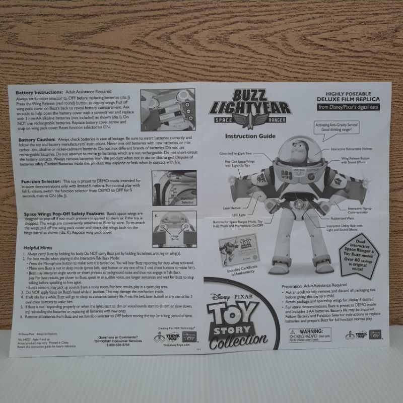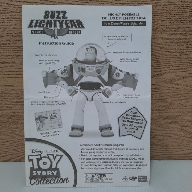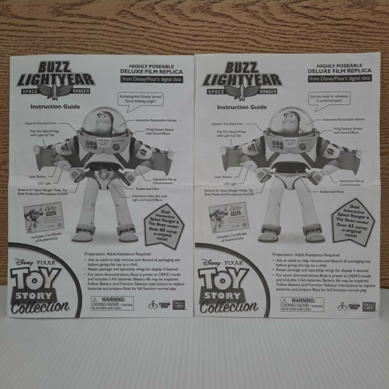 Toy Story Signature Collection Certificate & Buzz Lightyear User Manul !copy!