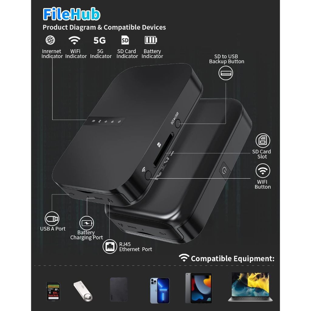 Travel Router: Portable Hard Drive SD Card Reader & Mini WiFi Range Extender for Travel | Wireless Access External Harddrive & USB Storage Device เราเตอร์สำหรับการเดินทาง ฮาร์ดไดรฟ์ เครื่องอ่านการ์ด SD และ Mini WiFi Range Extender