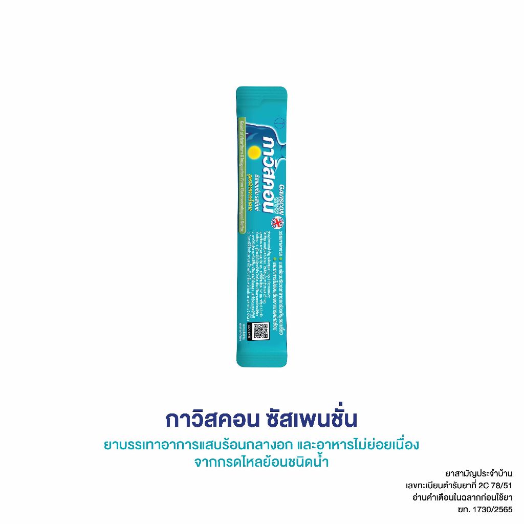 Gaviscon 10ml suspension ดั้งเดิม กาวิสคอน ช่วยบรรเทาอาการแสบร้อนกลางอกจากโรคกรดไหลย้อน สามัญประจำบ้าน