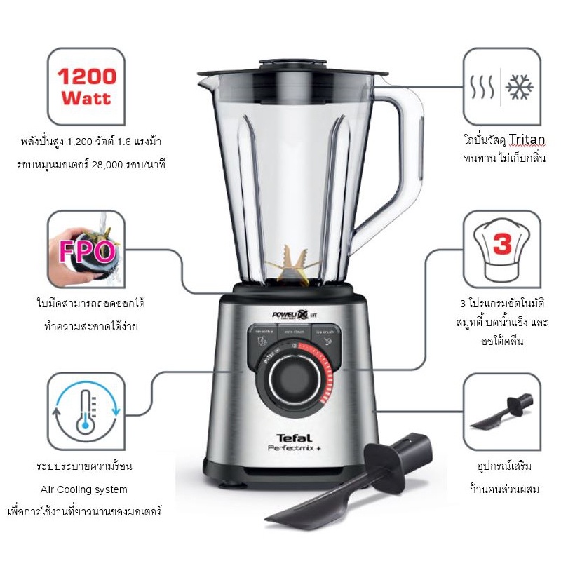Tefal เครื่องปั่นพลังสูง Perfect Mix Tritan ร ุ่น BL82AD31 ความจุ 2 ลิตร กำลังไฟ 1,200 วัตต์ ใบมีดสามารถถอดทำความสะอาดได้