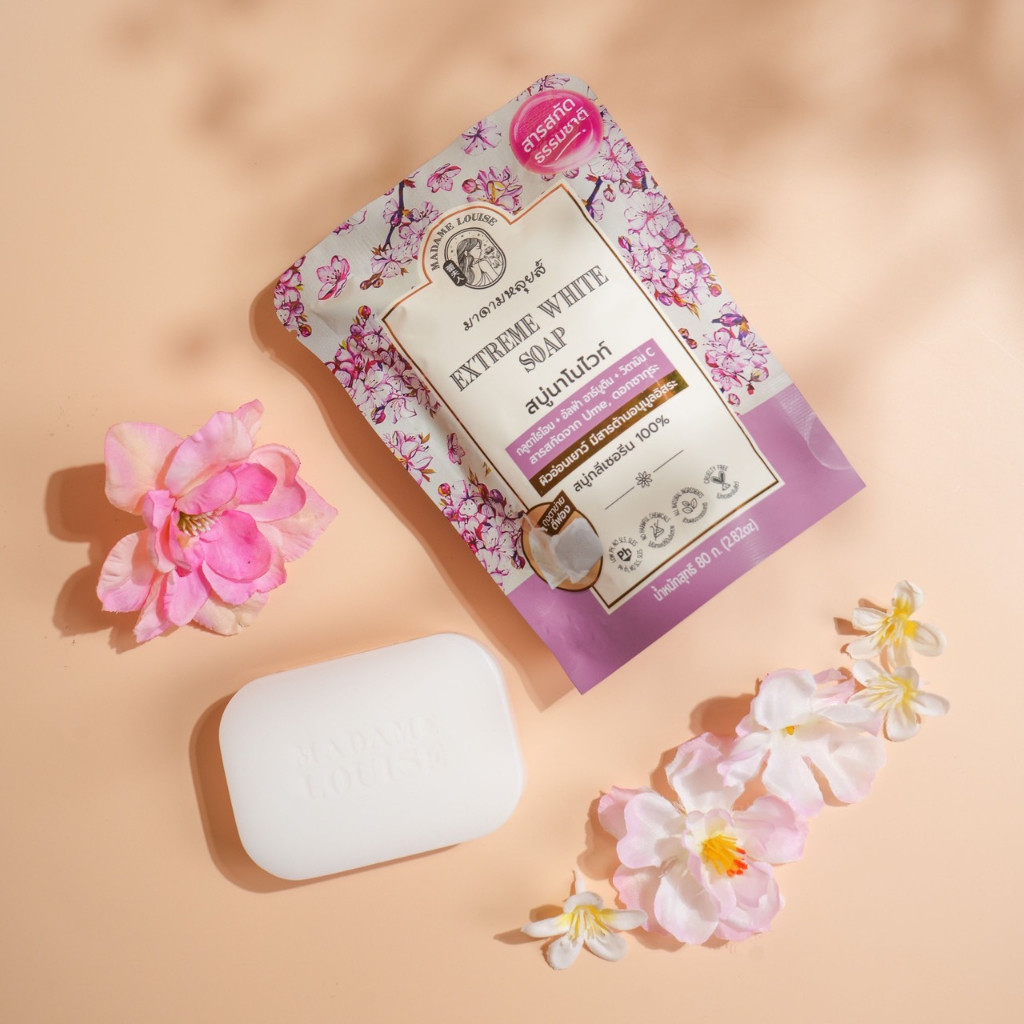 แพ็ค 4 ซอง สบู่มาดามหลุยส์ นาโนไวท์ สีชมพู 4 ก้อน (80กรัม X 4 )
