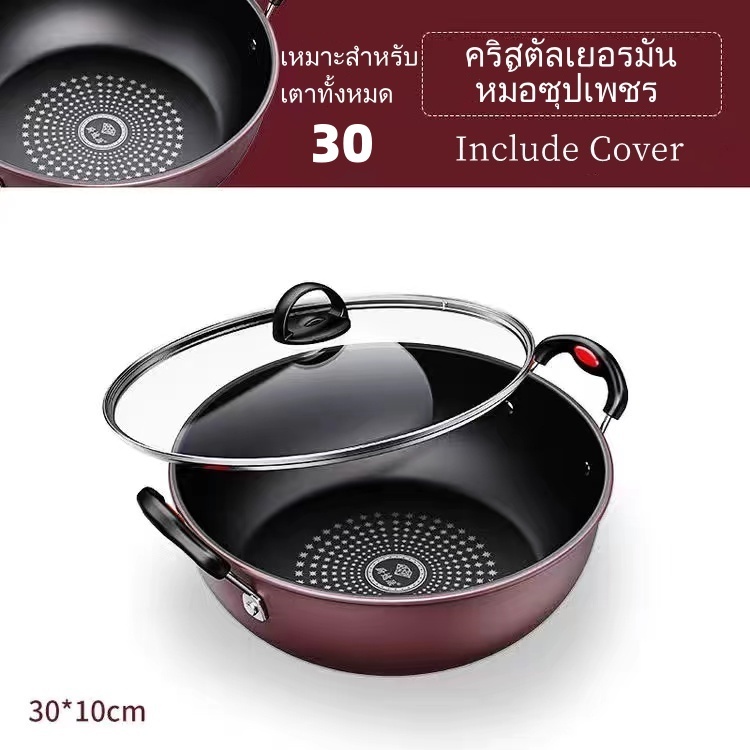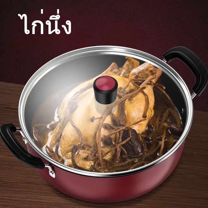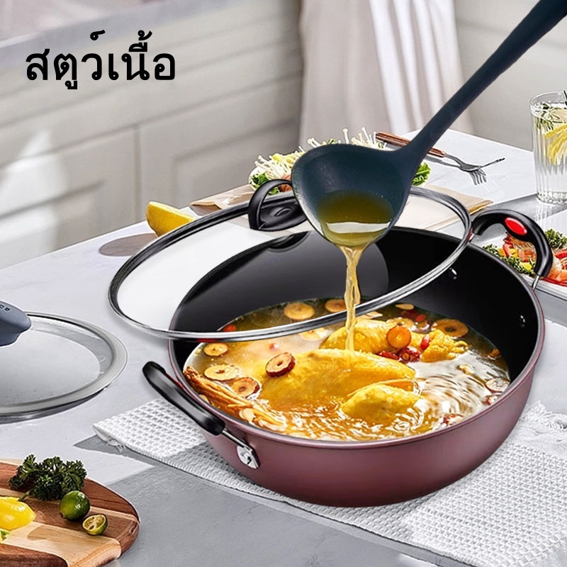 26/28/30 หม้อซุป ไม่ติดกระทะ กระทะทอด เหมาะสำหรับเตาแม่เหล็กไฟฟ้าและเตาแก๊ส