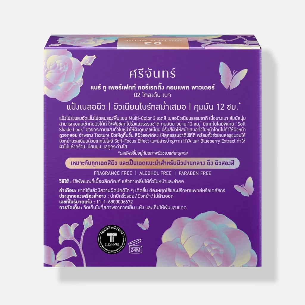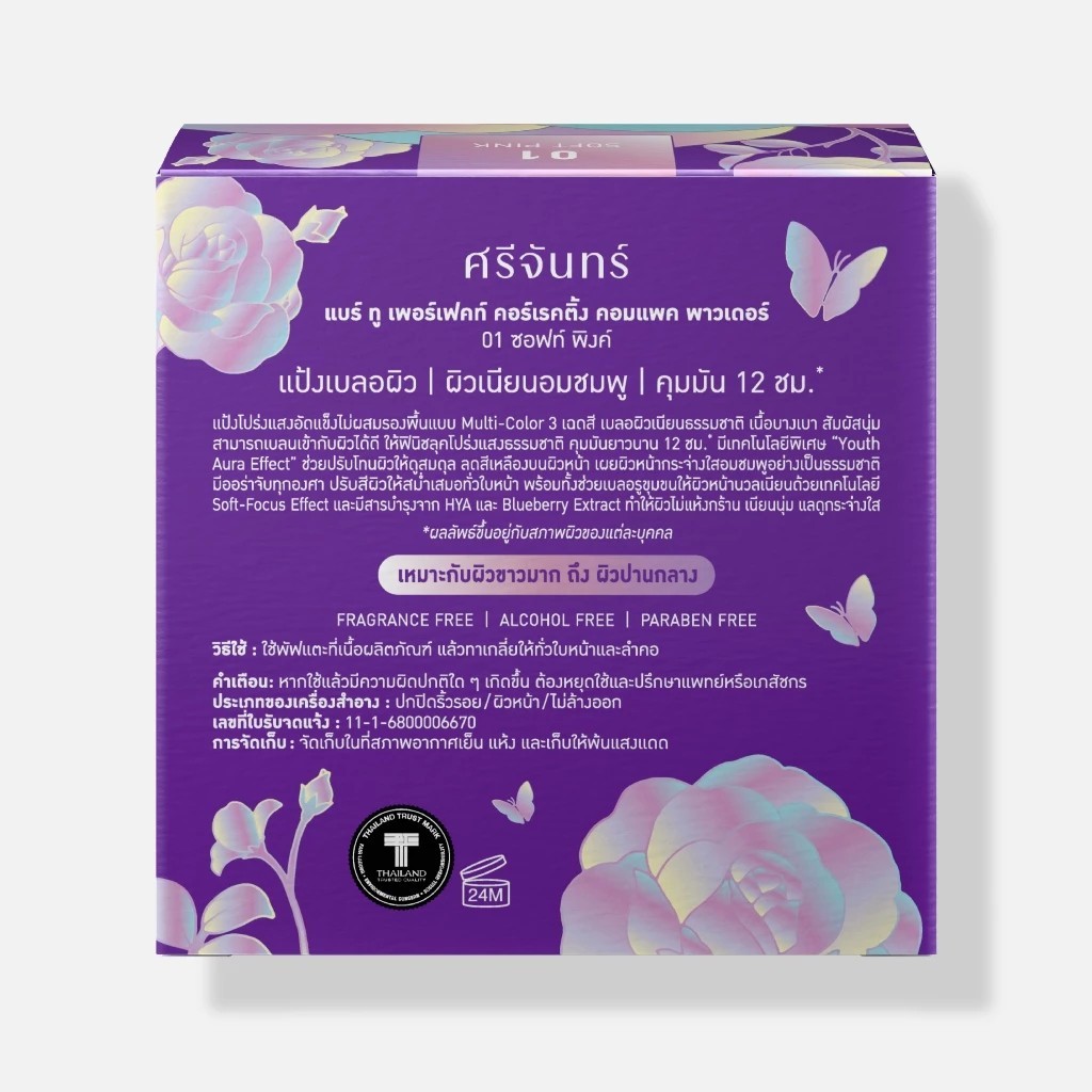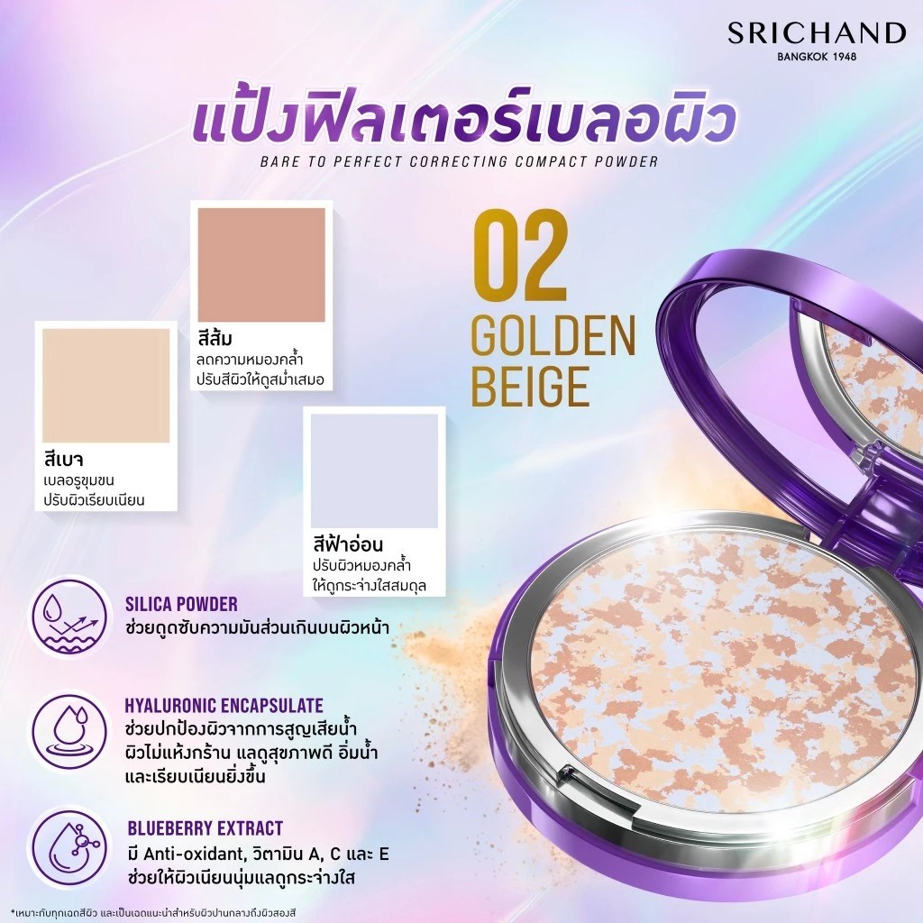 Srichand Bare To Perfect Correcting Compact Powder 7 g.แป้งโปร่งแสงอัดแข็งไม่ผสมรองพื้นแบบ Multi-Color 3 เฉดสี