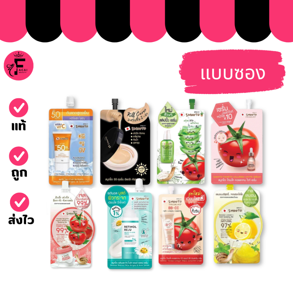 (1 ซอง) SMOOTO สมูทโตะ เรตินอล/cc คูชั่น/เซรั่ม/เจล/ บีบี ซีซี (ปริมาณ 7/10/30/40/50 กรัม)