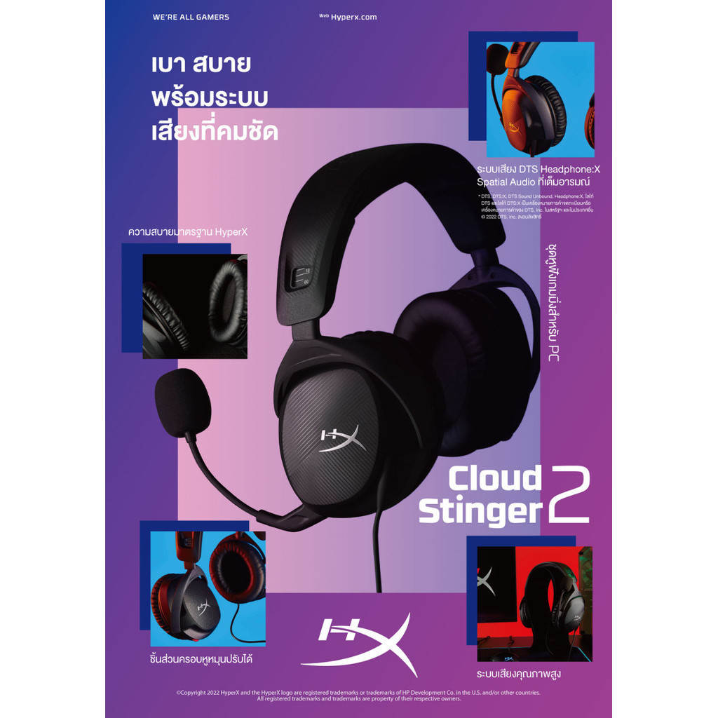 HyperX Cloud Stinger 2 – Greatness Refined, Lightweight over-ear headset with mict (519T1AA) สินค้าแท้ ประกันศูนย์ 2 ปี