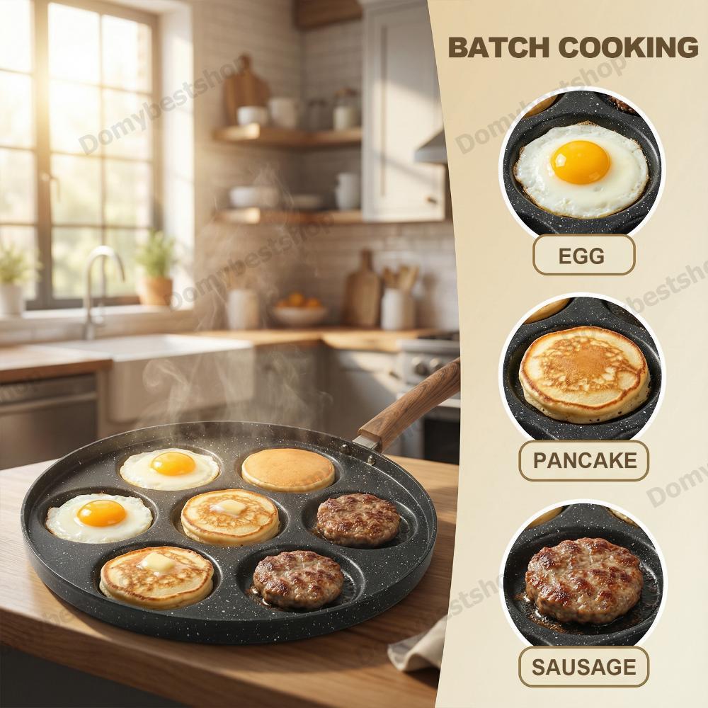 7 หลุมกระทะไข่เครื่องเบอร์เกอร์ไข่สําหรับเตาแก๊สและเตาเซรามิกไฟฟ้า