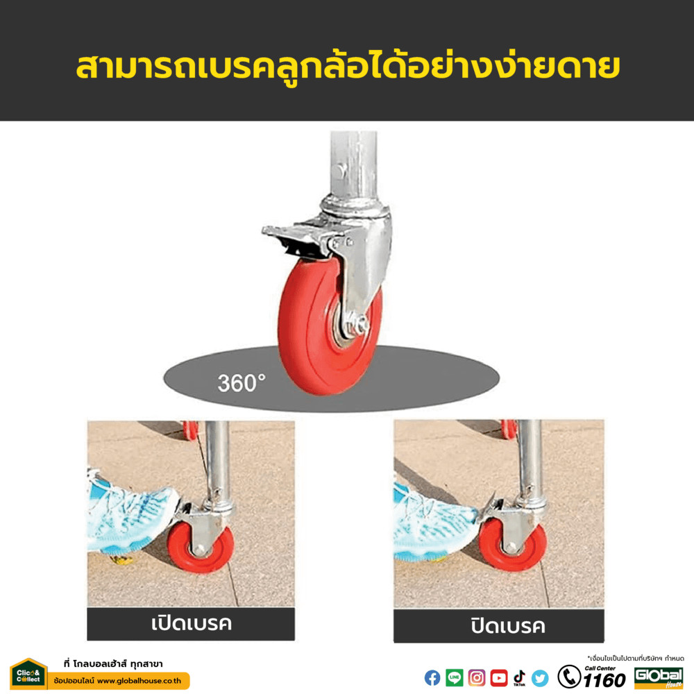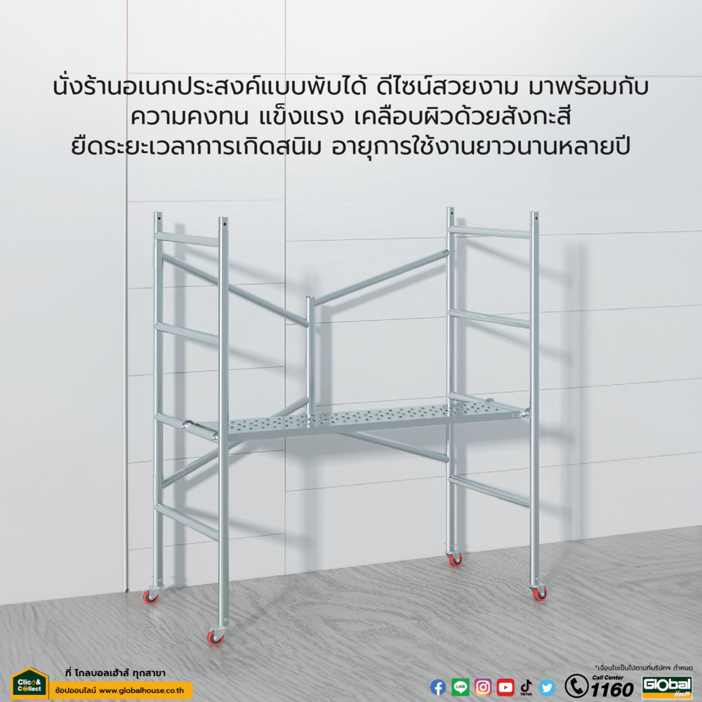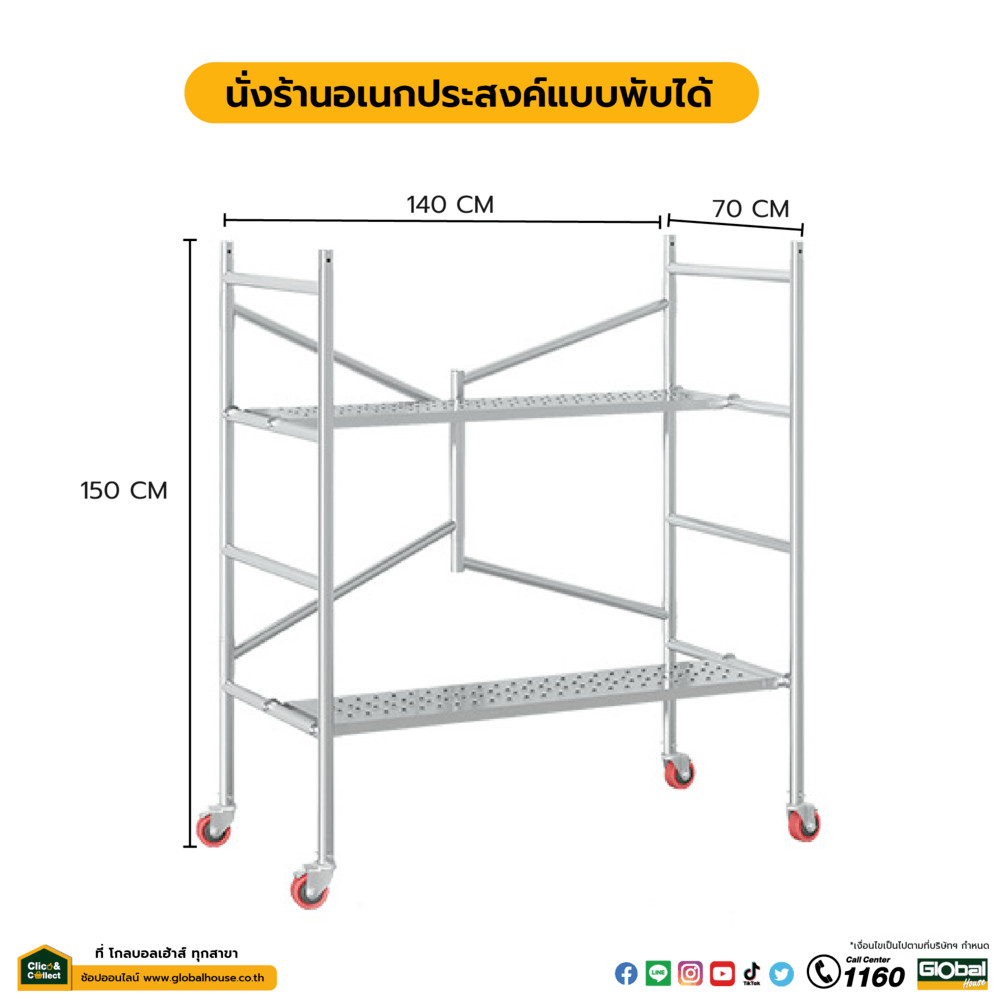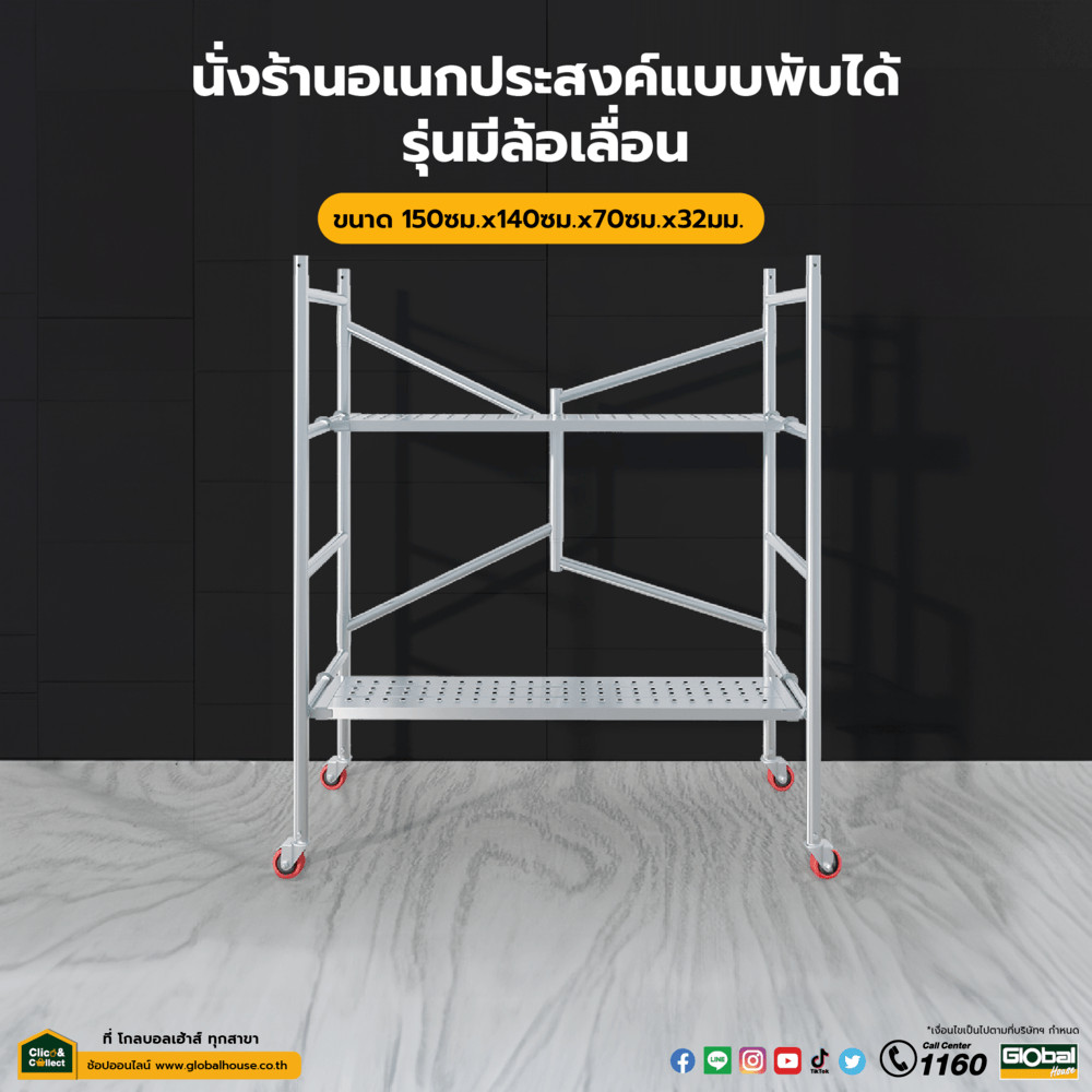 GlobalHouse นั่งร้านอเนกประสงค์แบบพับได้ ขนาด 150ซม.x140ซม.x70ซม.x32มม.รุ่นมีล้อ สินค้าของแท้คุณภาพดี