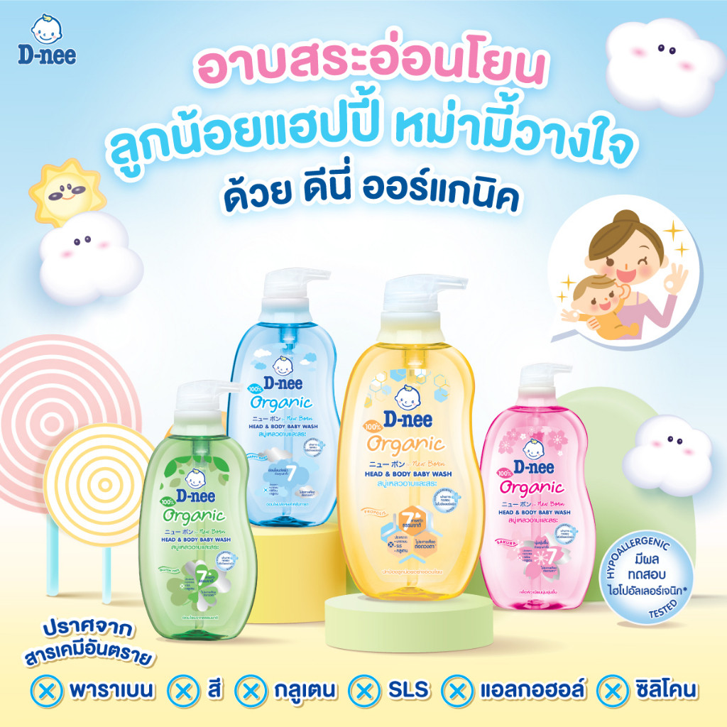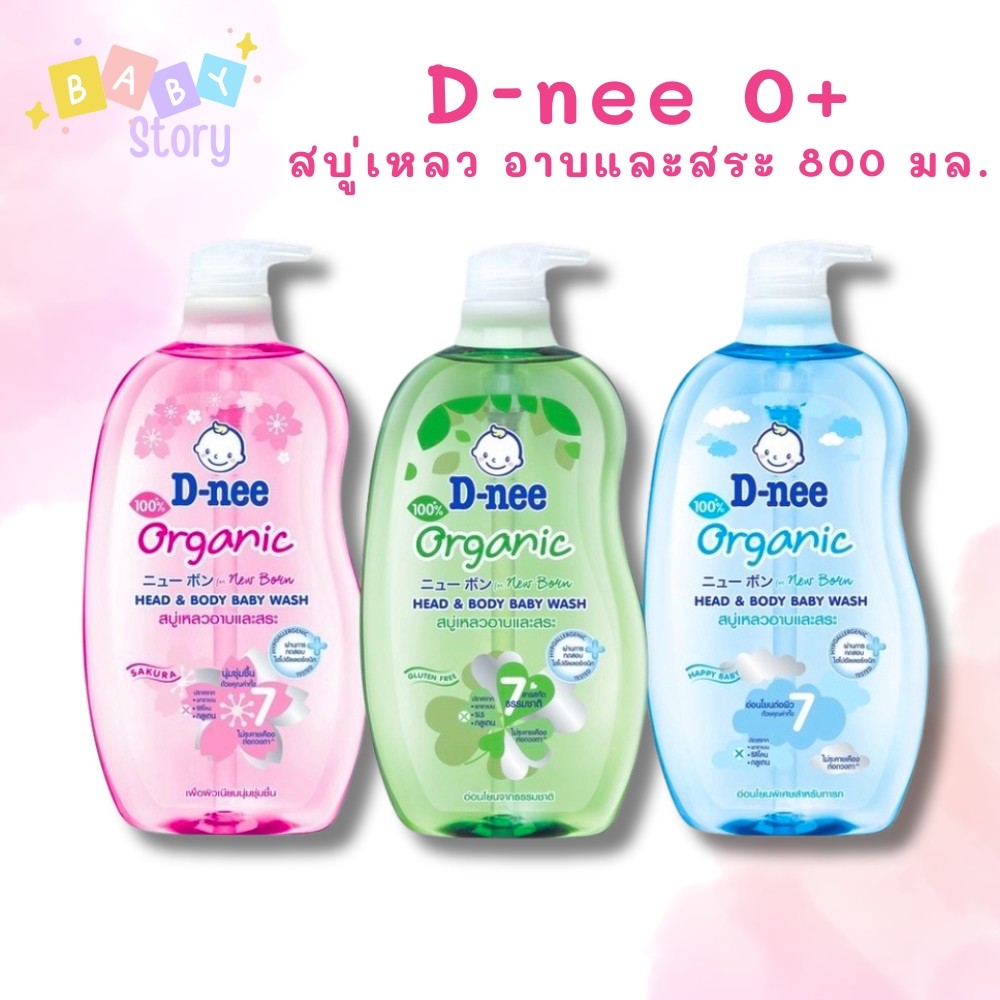 [ขวดใหญ่สุดคุ้ม] D-nee ดีนี่ ออร์แกนิค สบู่เหลวอาบและสระ หัวปั๊ม [ขนาด 800 มล.] สบู่เหลวเด็ก สบู่เหลวอาบสระ
