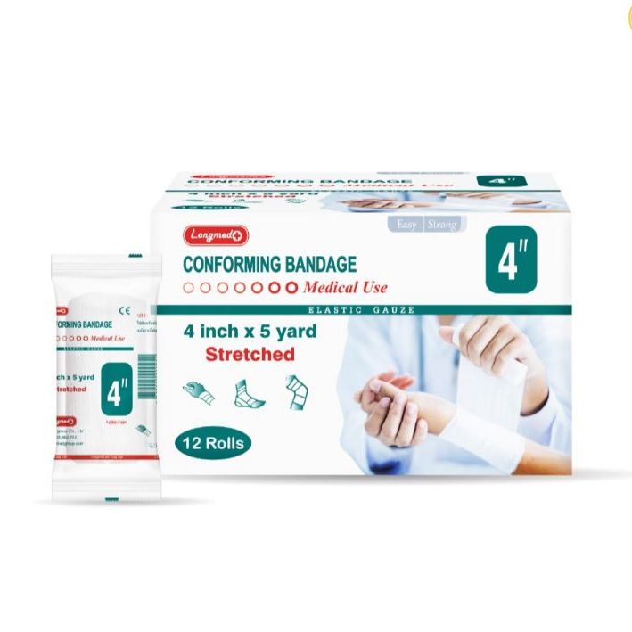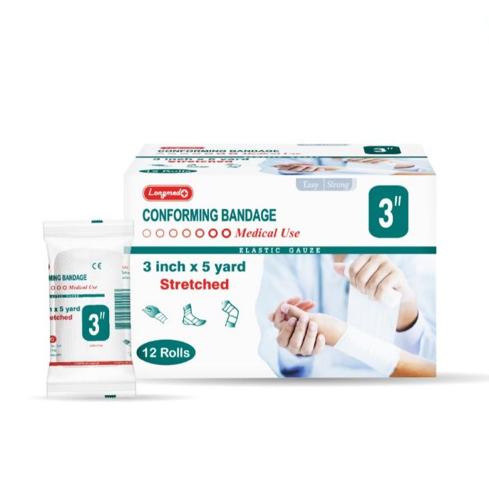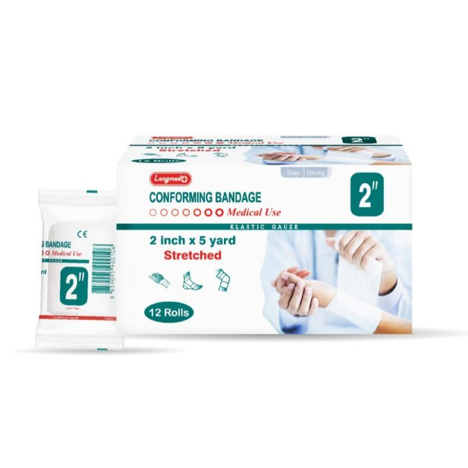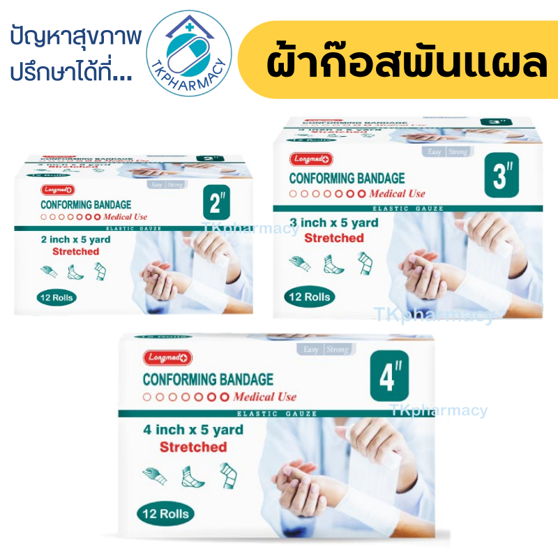 Longmed Conforming Bandage ผ้ายืดพันแผล ผ้าพันแผล ผ้าก๊อสพันแผล - สีขาว ***ราคาต่อแพ็ค แพ็คละ12ม้วน***
