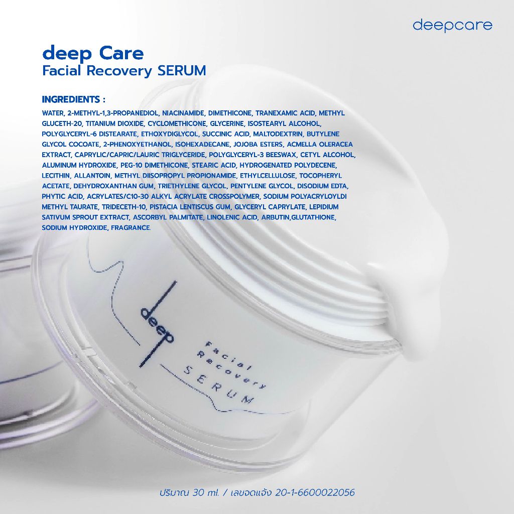 DEEP ดีพ เซรั่ม : ช่วยเรื่องฝ้ากระ จุด ด่างดำ ริ้วรอย รูขมข้นกว้างให้กระชับ ผิวหน้ากระจ่างใส ลดสิว