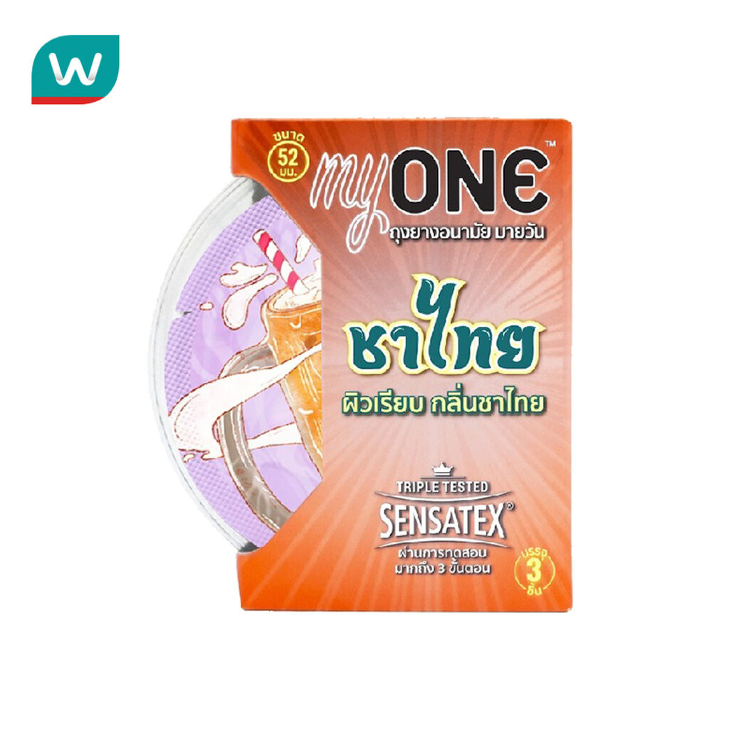 My One ถุงยางอนามัย มายวัน ชาไทย ขนาด 52 มม. กล่อง 3 ชิ้น