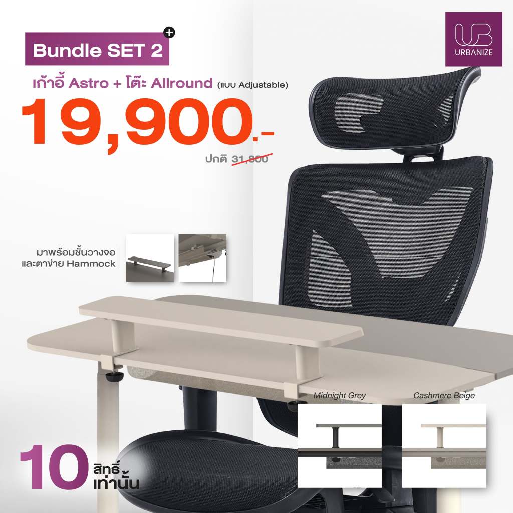 [Bundle Set 2 ซื้อเป็นชุดถูกกว่า] เก้าอี้ Astro ดำ + โต๊ะ Allround แบบปรับระดับ + ตาข่าย Hammock + ที่วางจอ Monitor Rise