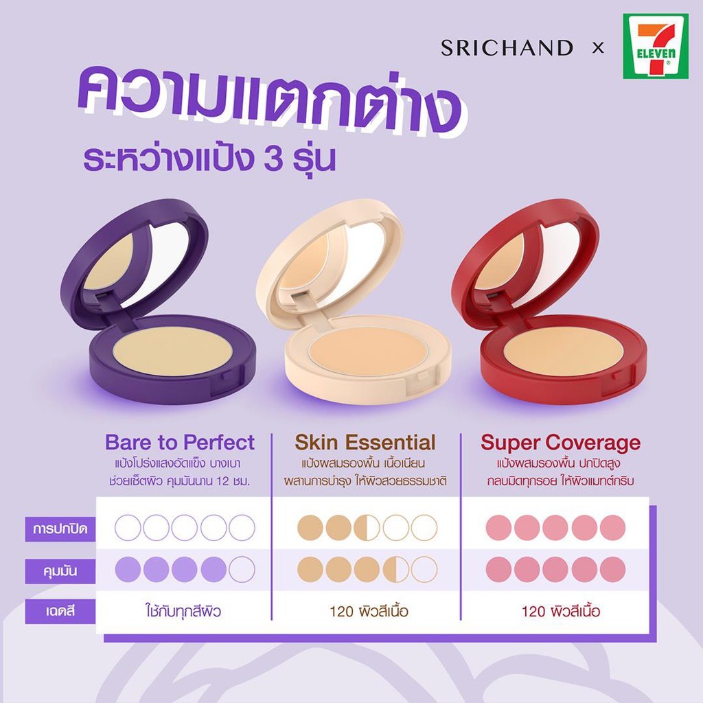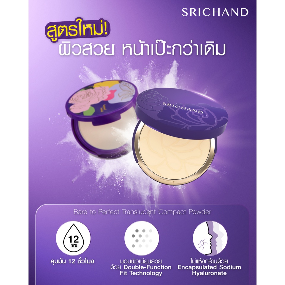 ถูก/แท้/มีไลฟ์ แป้งม่วง Gen2 แป้งอัดแข็ง Srichand Bare to Perfect Translucent Compact Powder ศรีจันทร์ โปร่งแสง