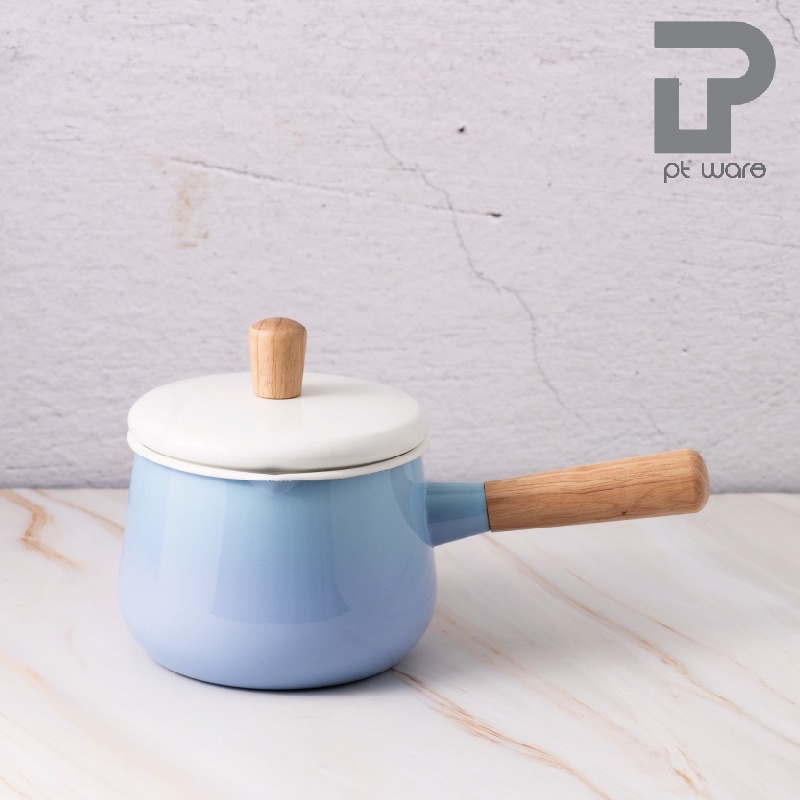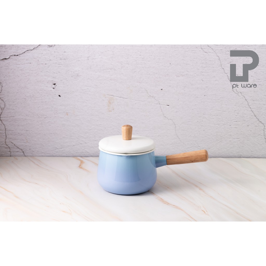 หม้อ หม้อด้ามเคลือบอินาเมล หม้อเคลือบ หม้อด้าม ตรานกเพนกวิน ขนาด 1.5ลิตร สี Ombre ฟ้า-ม่วง