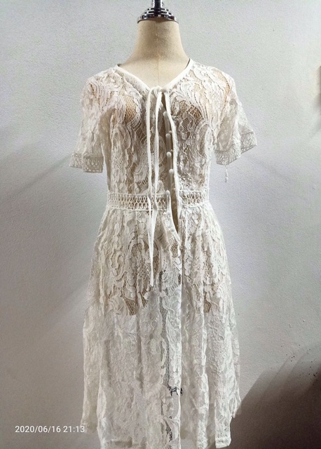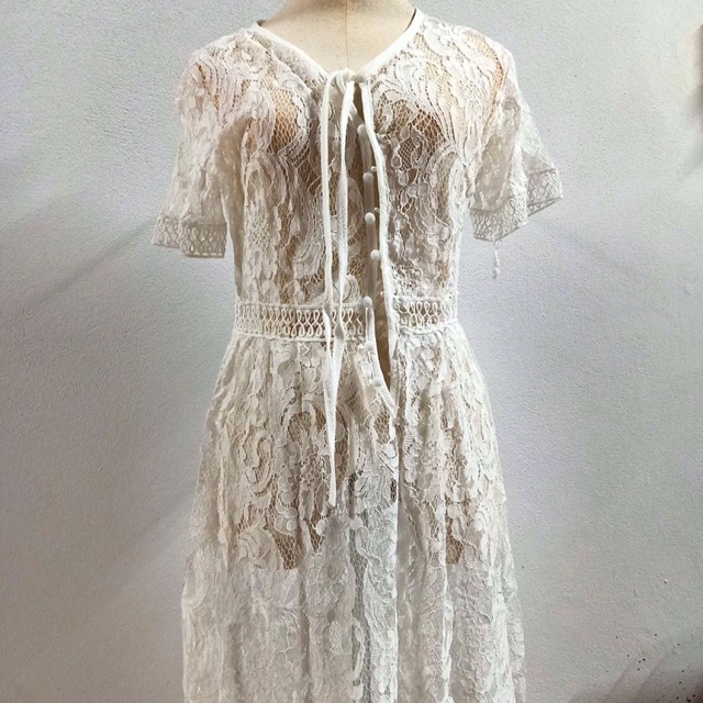 เดรสลูกไม้ ซับใน งานป้ายเกาหลี ฟรีไซร้ มือ1