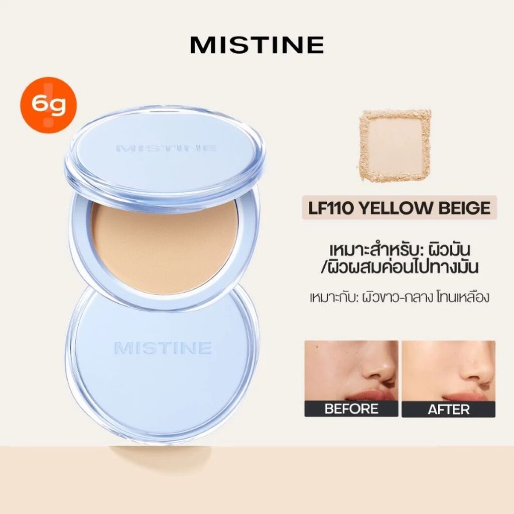 Mistine มิสทิน ซอฟต์แมตต์ แอนด์ ซิลกี้ ลองลาสติ้ง พาวเดอร์ ฟาวเดชั่น 6ก. LF110 เยลโลว์ เบจ