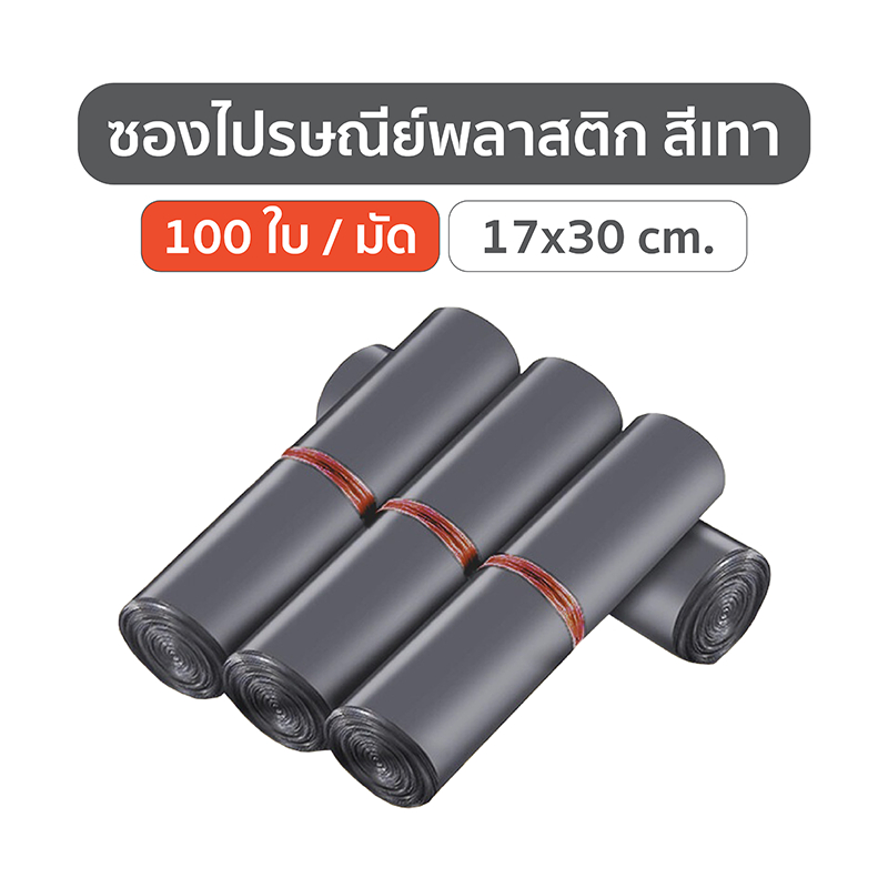 ซองไปรษณีย์พลาสติก สีเทาเข้ม กันน้ำ แพ็ค 100 ใบ หลายขนาด ถุงพัสดุเหนียวทน 💌📦