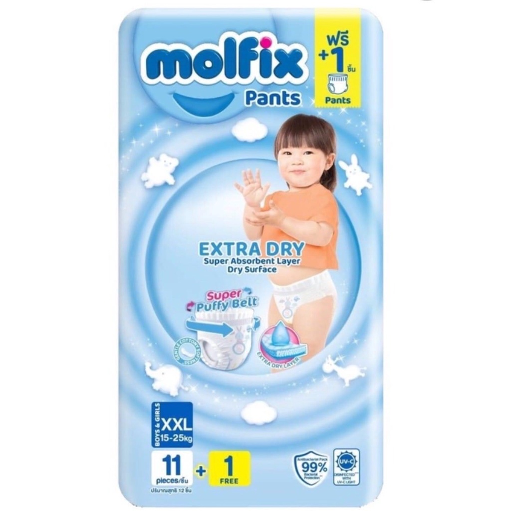 molfix 1 ห่อ ผ้าอ้อมโมฟิก โมลฟิก มอลฟิกซ์ ผ้าอ้อมกางเกง s/m/l/xl/xxl XXXLห่อเล็กราคาประหยัด ห่อสีฟ้า