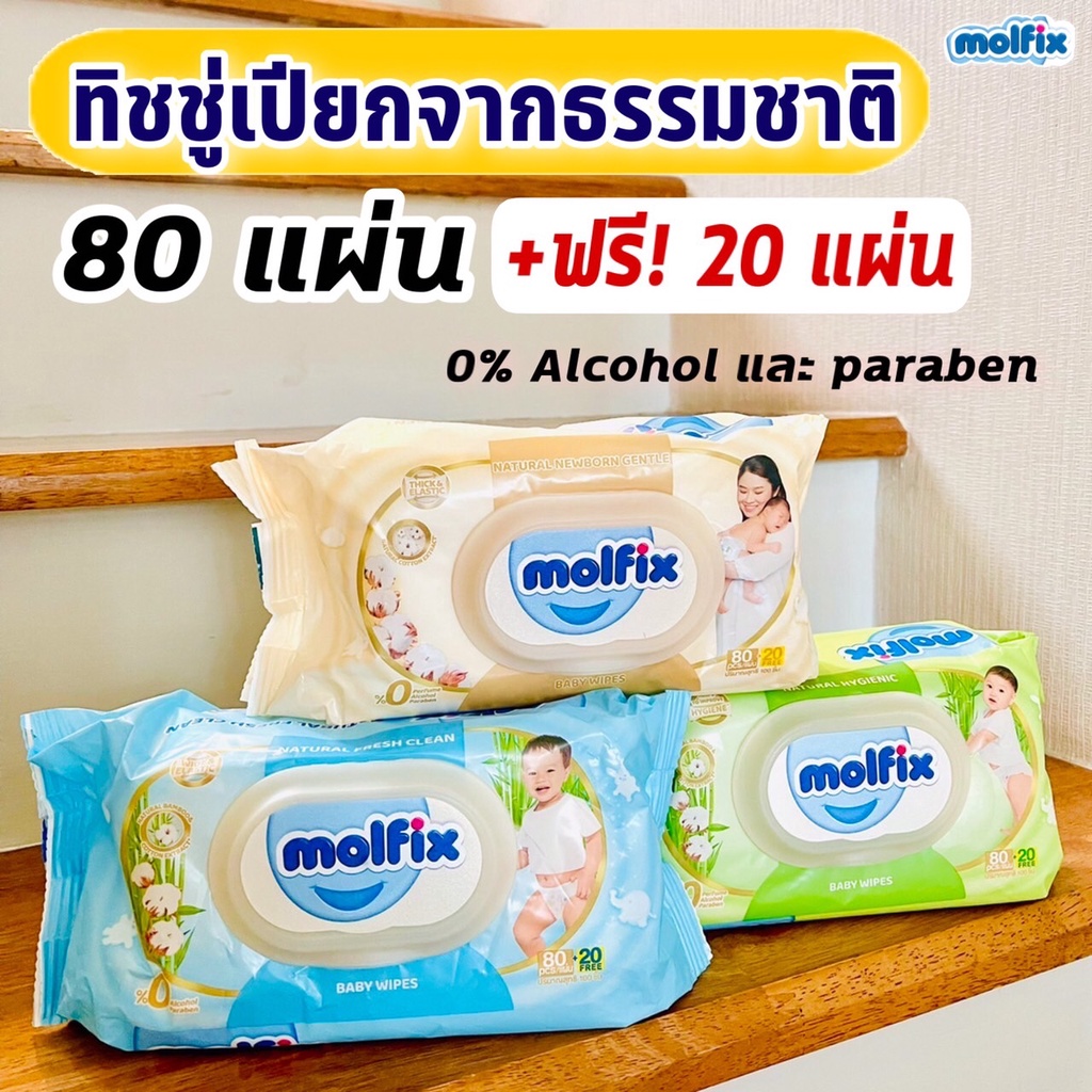 โมฟิกซ์ ทิชชู่เปียก กระดาษเปียก ทิชชู มอลฟิกซ์ โมฟิก จากธรรมชาติ (80แผ่น + ฟรี 20 แผ่น) Molfix ทิชชู่เด็ก (1 ห่อ)