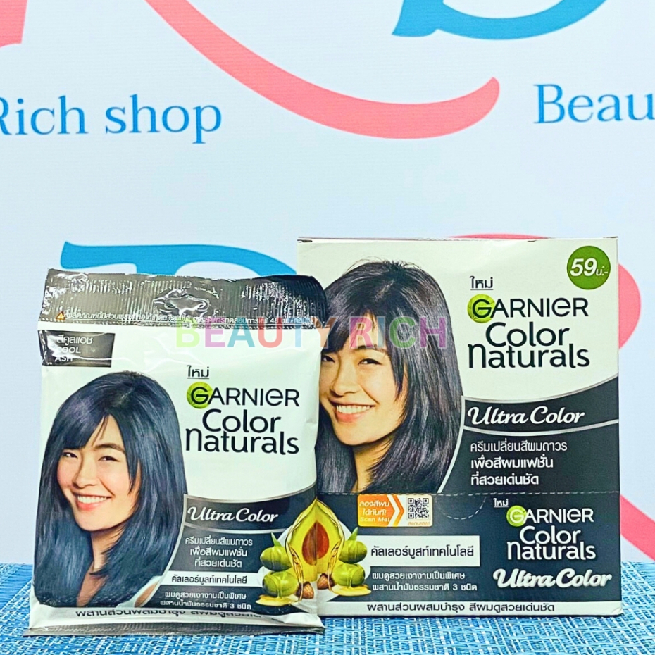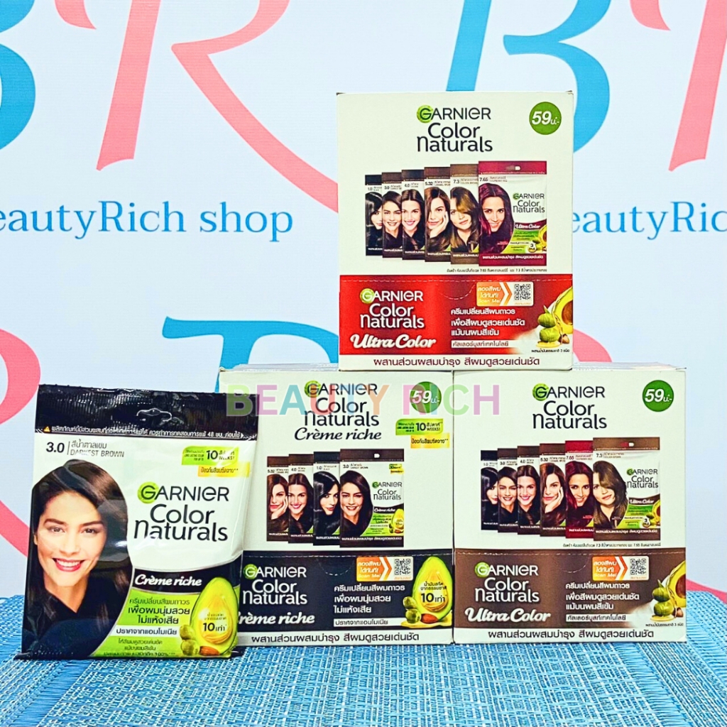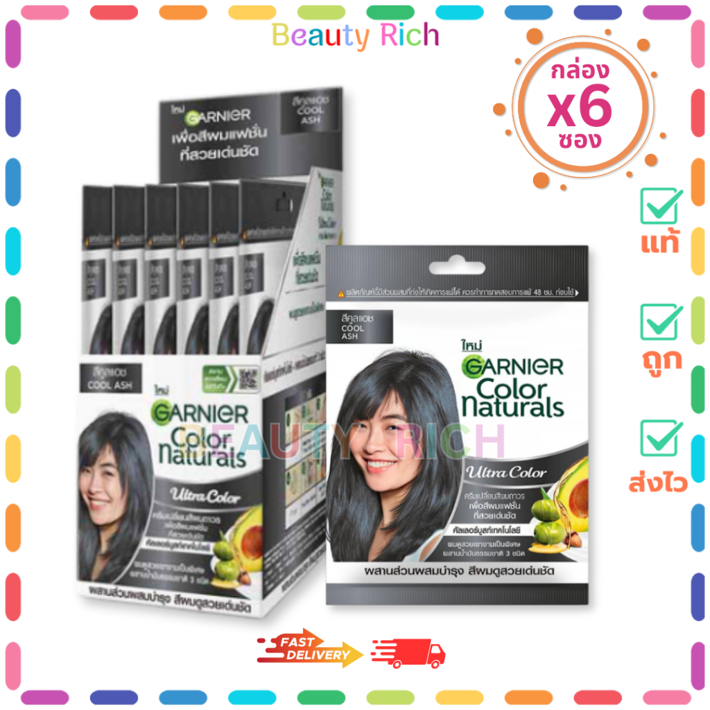 (กล่อง 6 ซอง) Garnier Color Naturals การ์นิเย่ คัลเลอร์ สีสระปิดผมขาว #สีคูลแอช (30 กรัม)