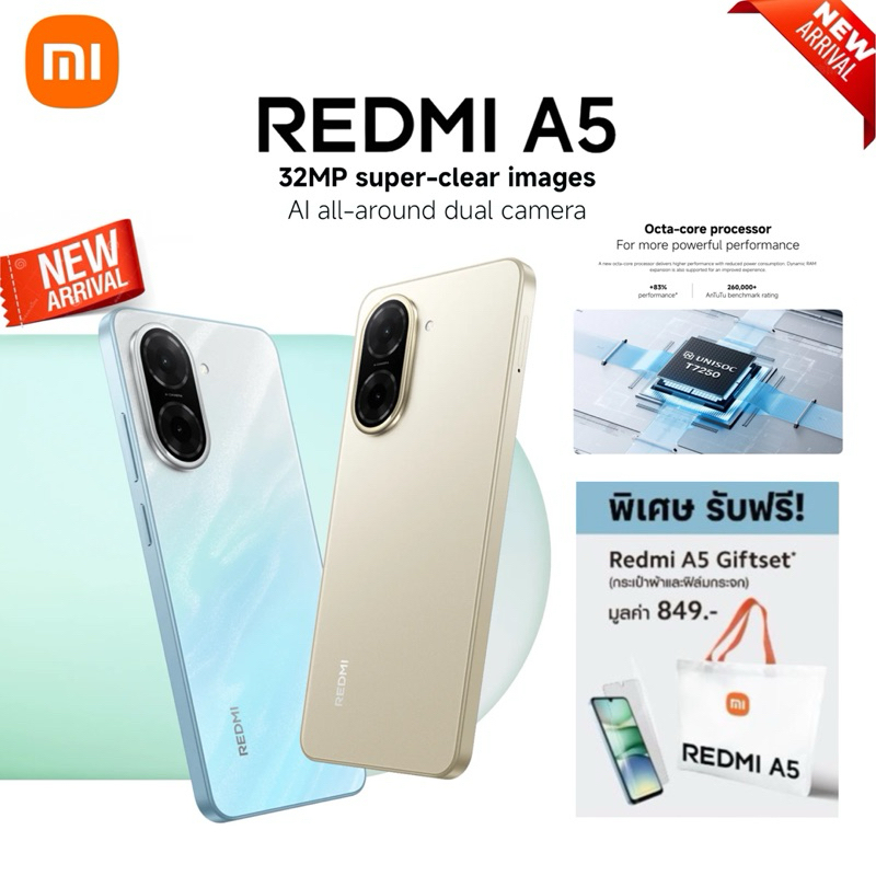[New] Xiaomi Redmi A5(3/64-4/128Gb) สมาร์ทโฟน แบต 5,200 mAh ประกันศูนย์ 15 เดือน