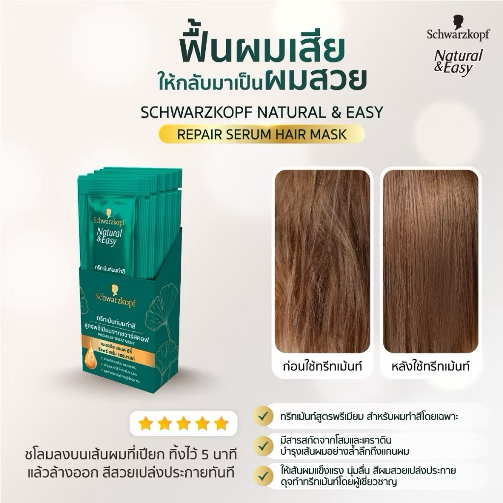 ส่งฟรี/มีไลฟ์ Schwarzkopf Natural & Easy Repair Serum Hair Mask 1 กล่อง(6ซอง) ชวาร์สคอพฟ์ เซรั่ม แฮร์มาสก์ ทรีทเม้นท์