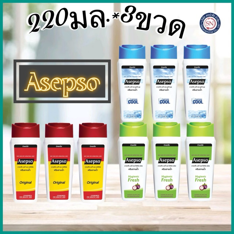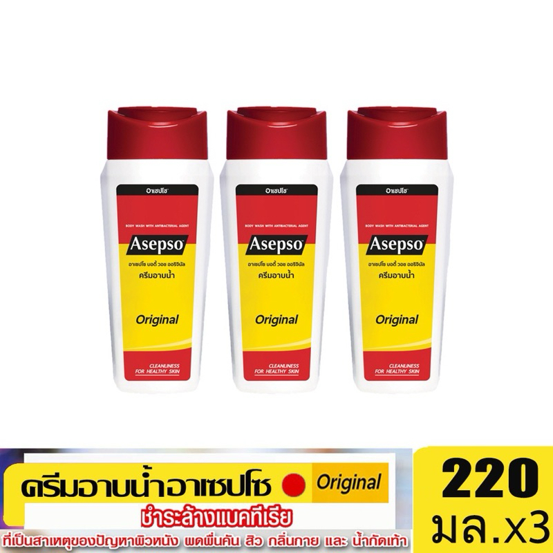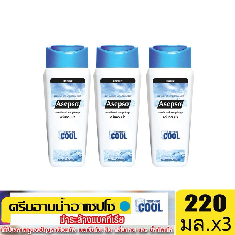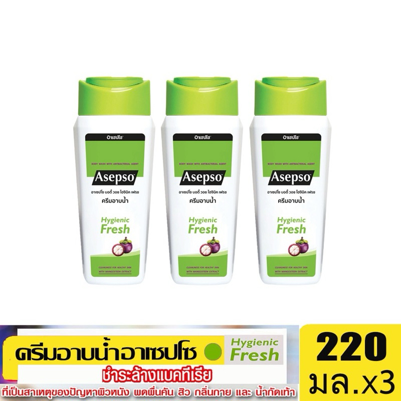 [แพค3ขวด]อาเซปโซ ครีมอาบน้ำ สูตรออริจินัล ,ไฮจินิค เฟรช และ ซูธ ทิ่ง คูล 220 มล.