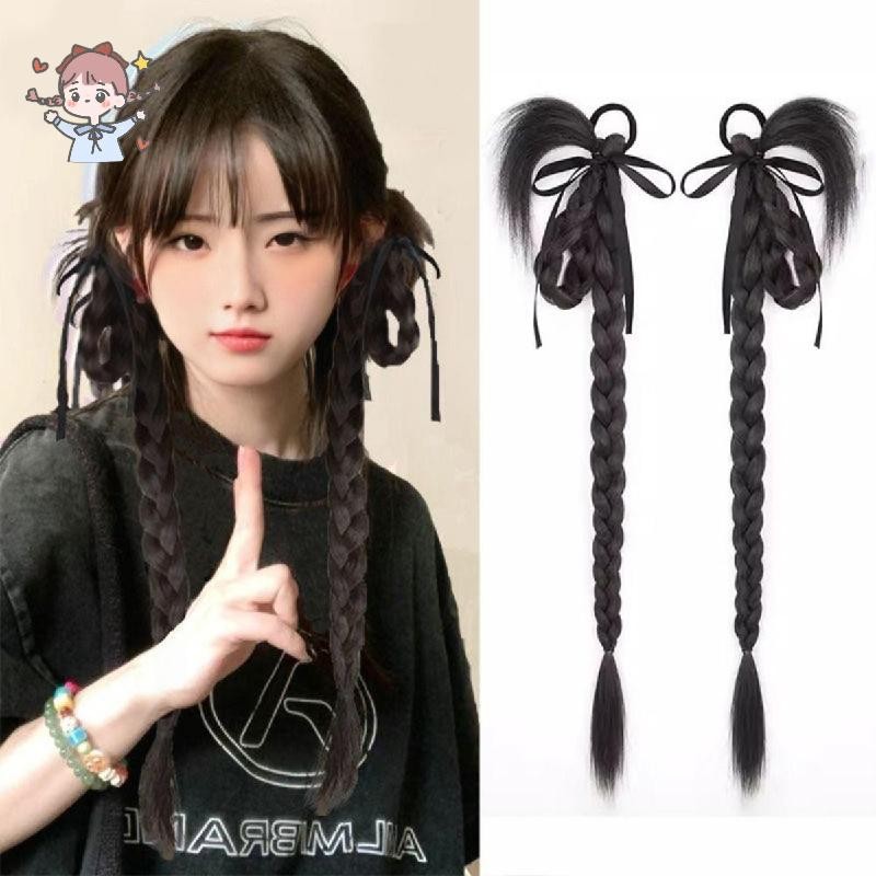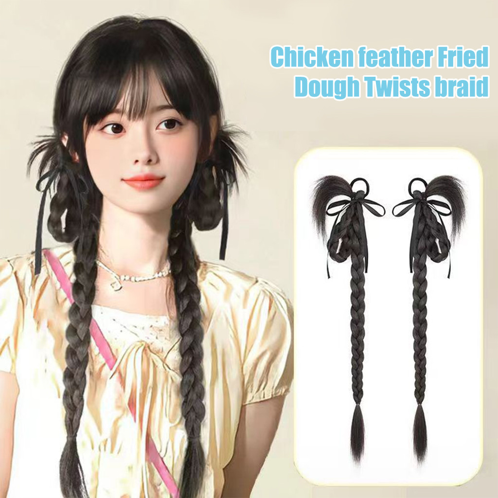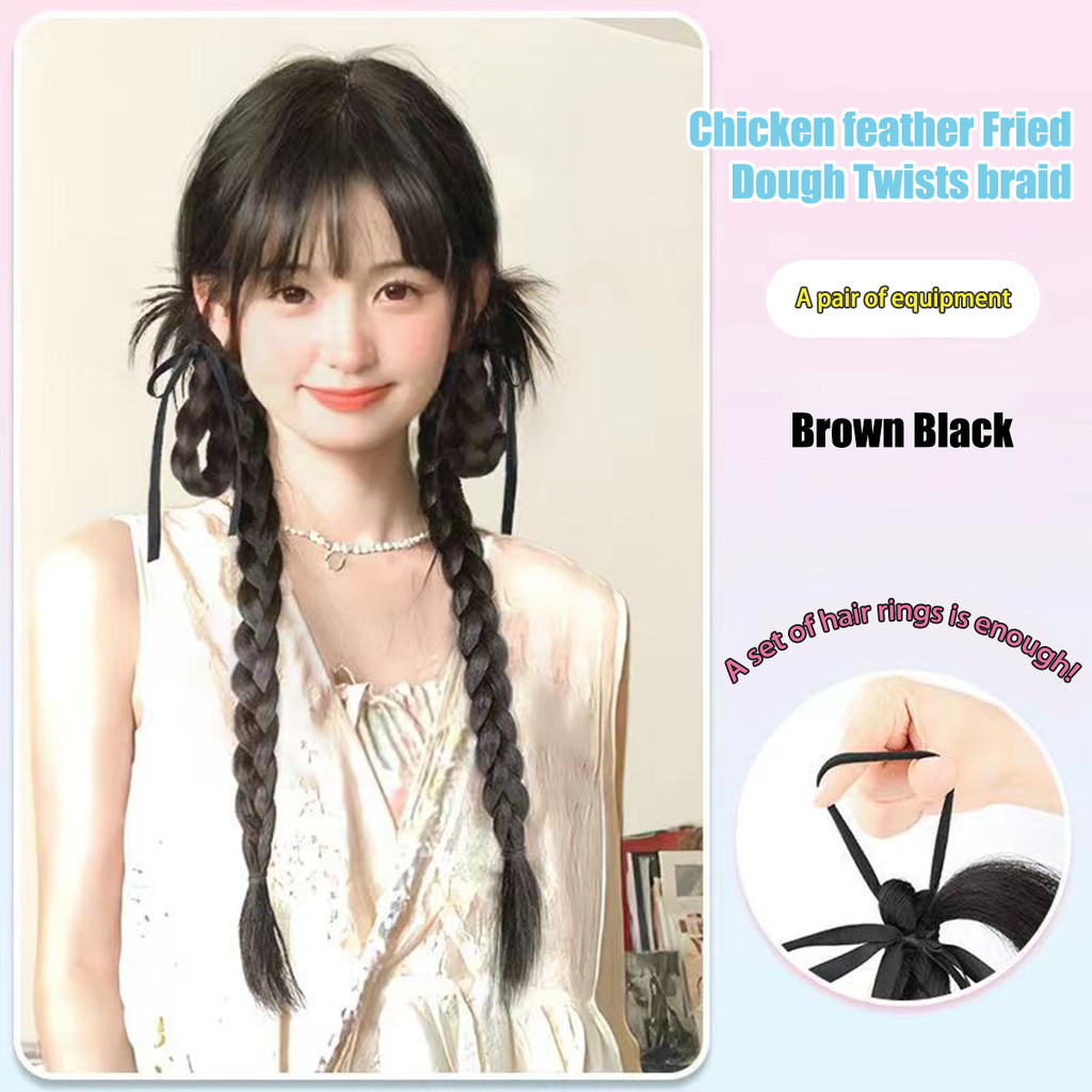 วิกผมถักเปียฟอง,ทอดแป้งบิดถักเปียวิกผมผมหางม้าคู่