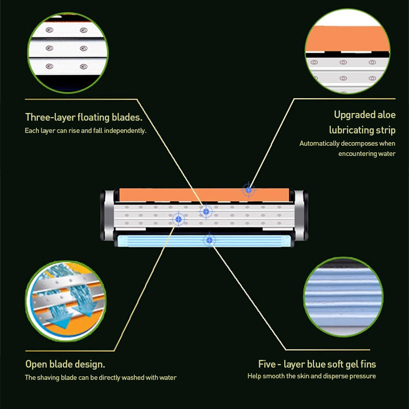 Gillette Vector 3 ใบมีด 3 ชั้น Sharp และ Smooth เครื่องโกนหนวดผู้ชายโกนหนวดเครื่องมือเครา 1 ด้าม 4 ใบมีด