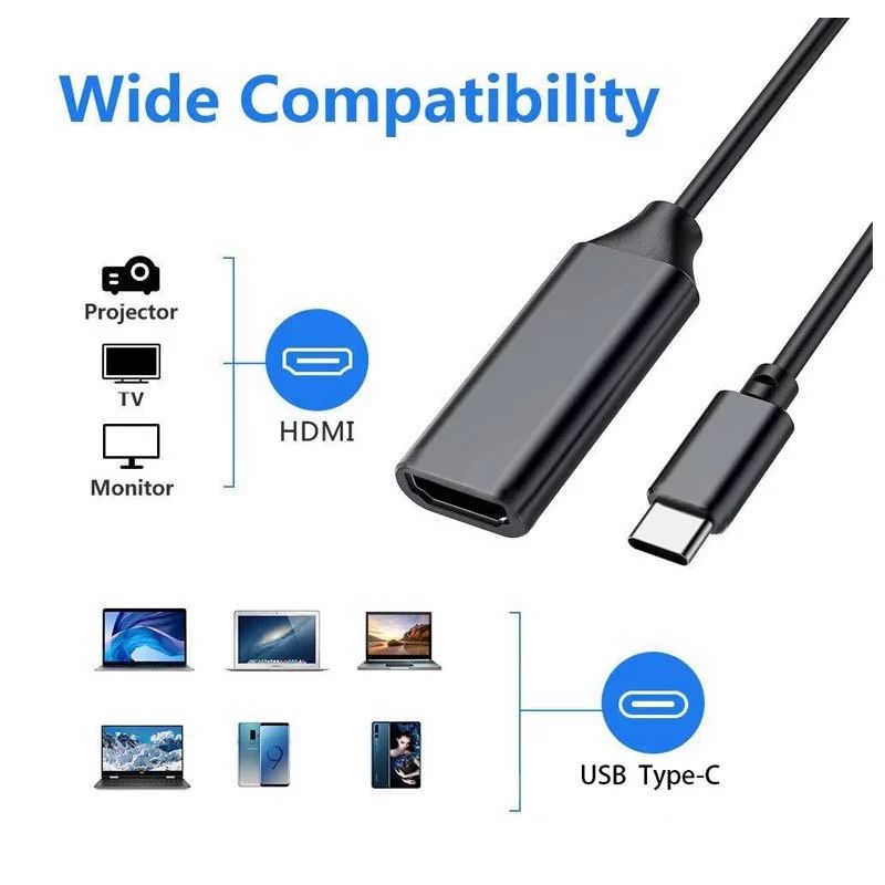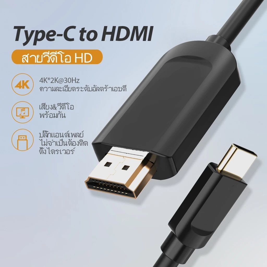 สายเคเบิล Type-C to HDMI ความละเอียดสูง 4K สำหรับ โทรศัพท์มือถือ แล็ปท็อป สีเทา/ดำ