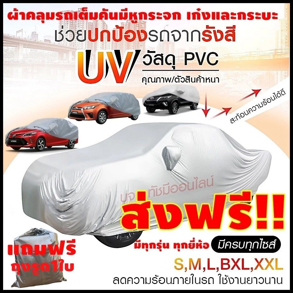 ผ้าคลุมรถยนต์ กันน้ำกันแดด กันรังสี UV แถมถุงเก็บผ้า