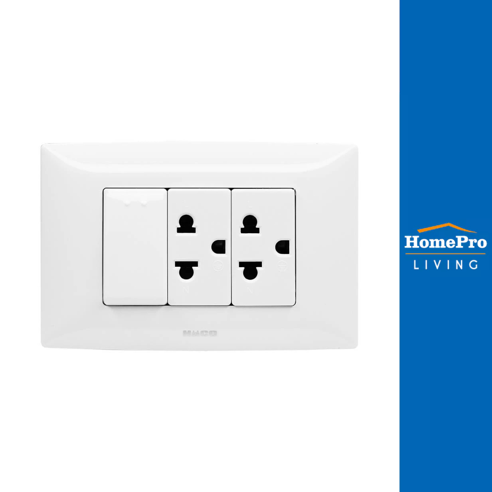 HACO ชุดเต้ารับคู่ 3 ขา + สวิตซ์ 1 ทาง AP-E21 สีขาว จัดส่งโดย HomePro
