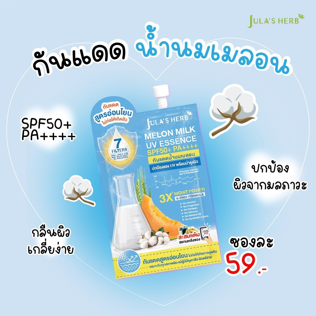 (1 หลอด) Jula's Herb Sensitive Melon Sunscreen SPF50+ ครีมกันแดดเนื้อน้ำนม