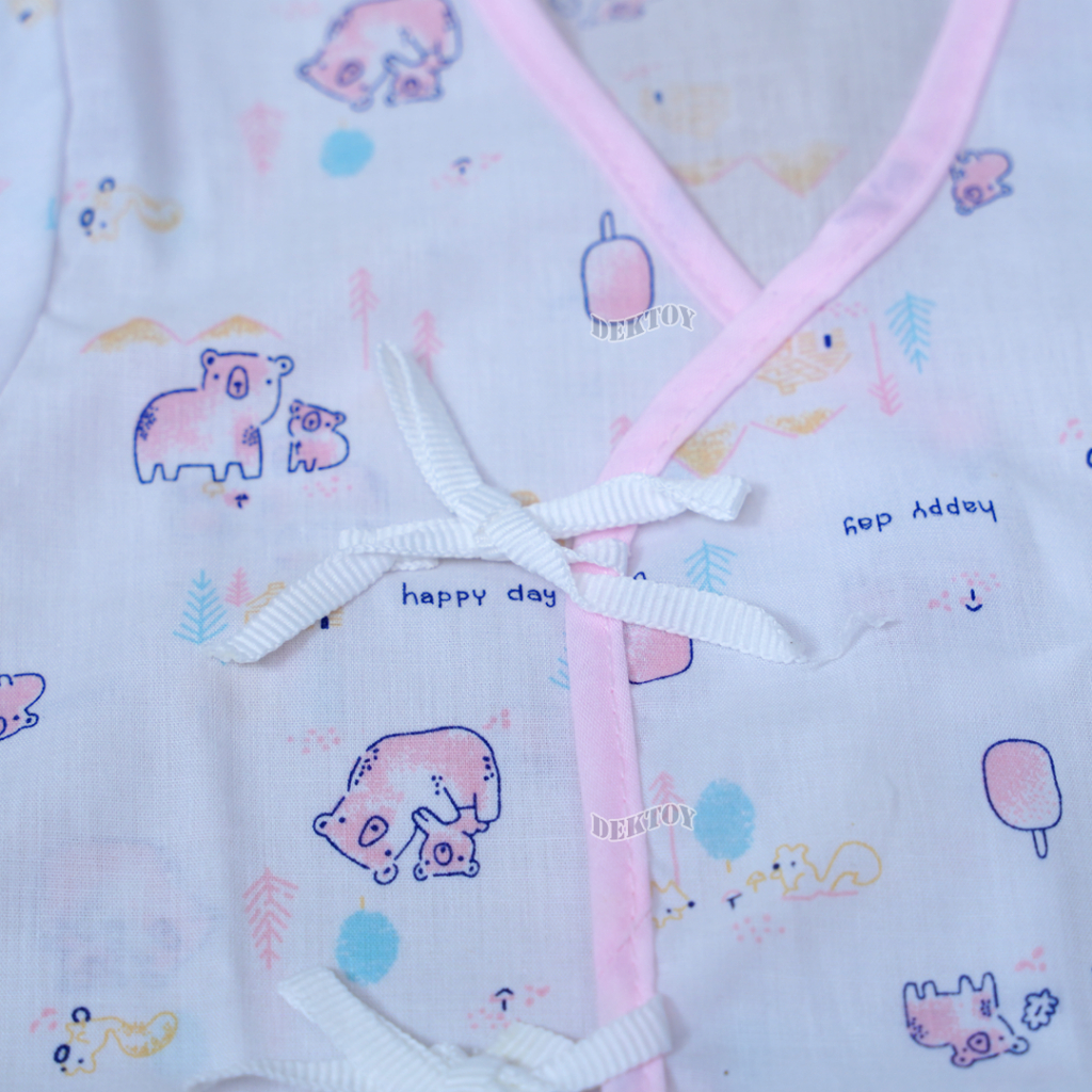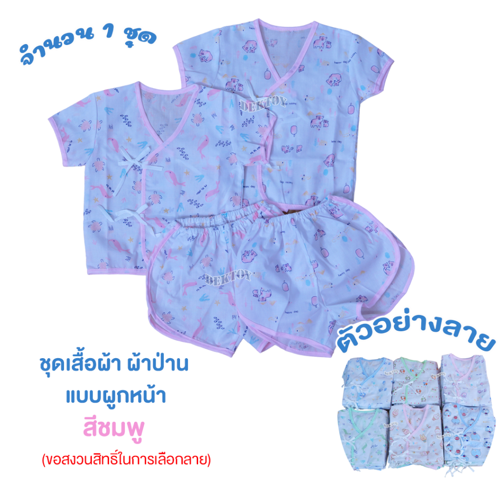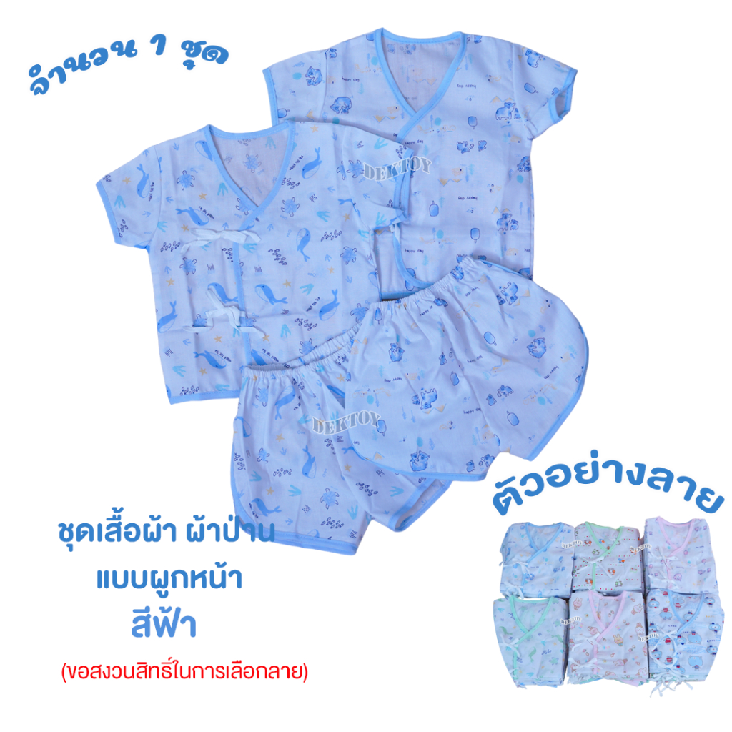 PA-111/2 Little home baby ชุดเสื้อผ้าเด็ก ผ้าป่าน แบบผูกหน้า 0-3 เดือน